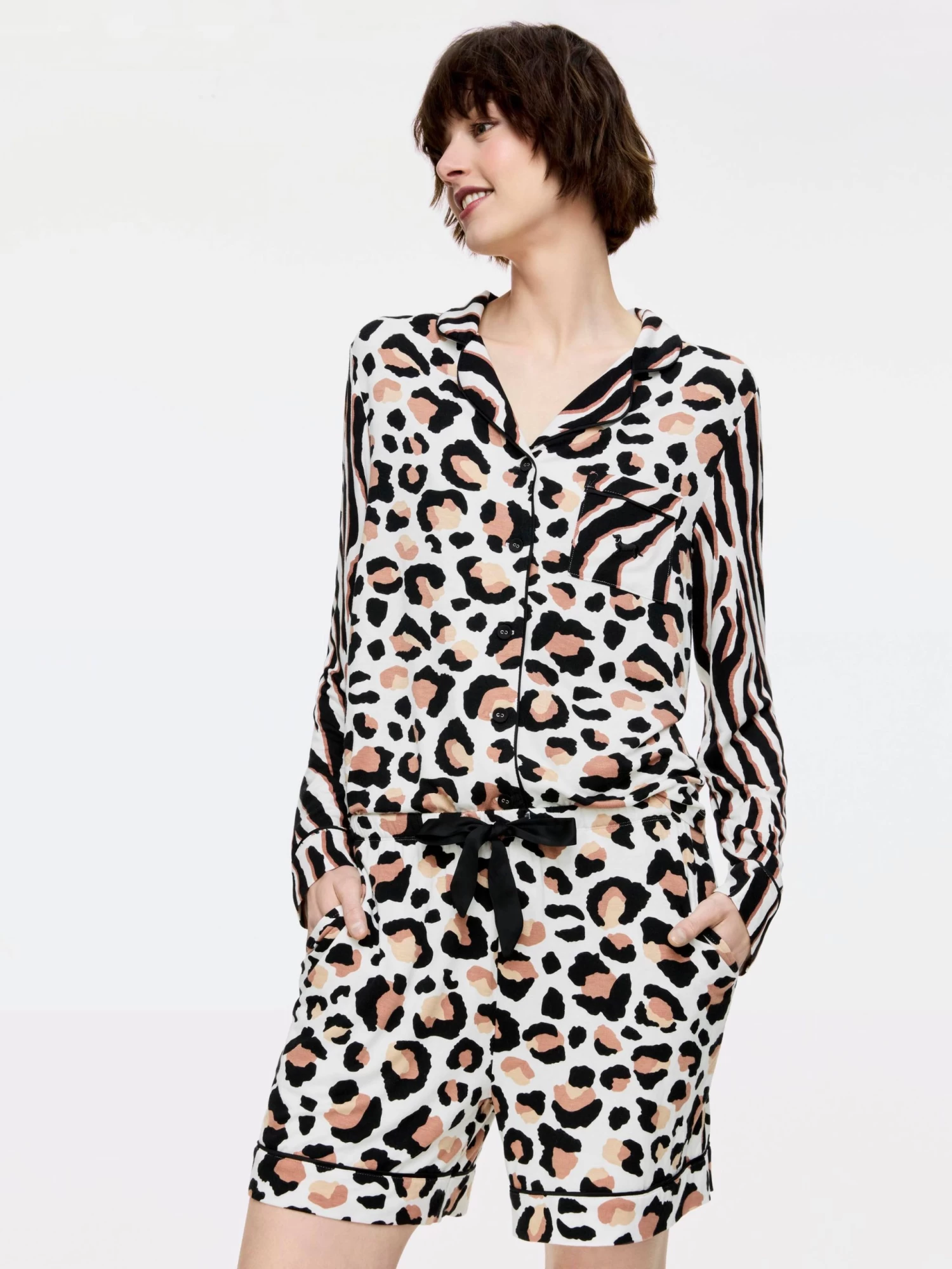 Go wild for this mixed animal print short. In a longer length and made from a soft viscose bamboo blend for comfort and style.