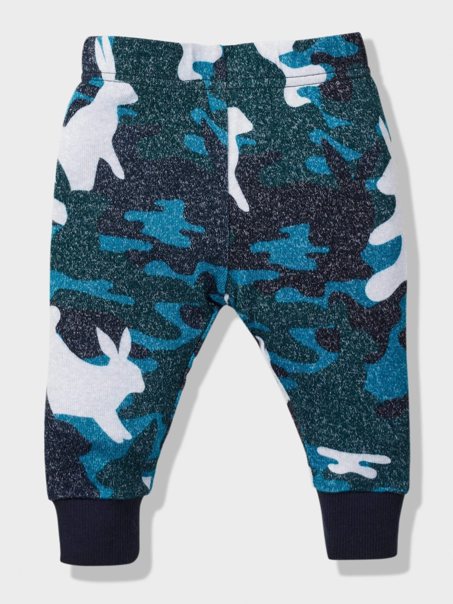 Spot the bunnies hiding the camo! This PJ set is made from the softest fuzzy fabrication and is perfect for little boy bub in your life.