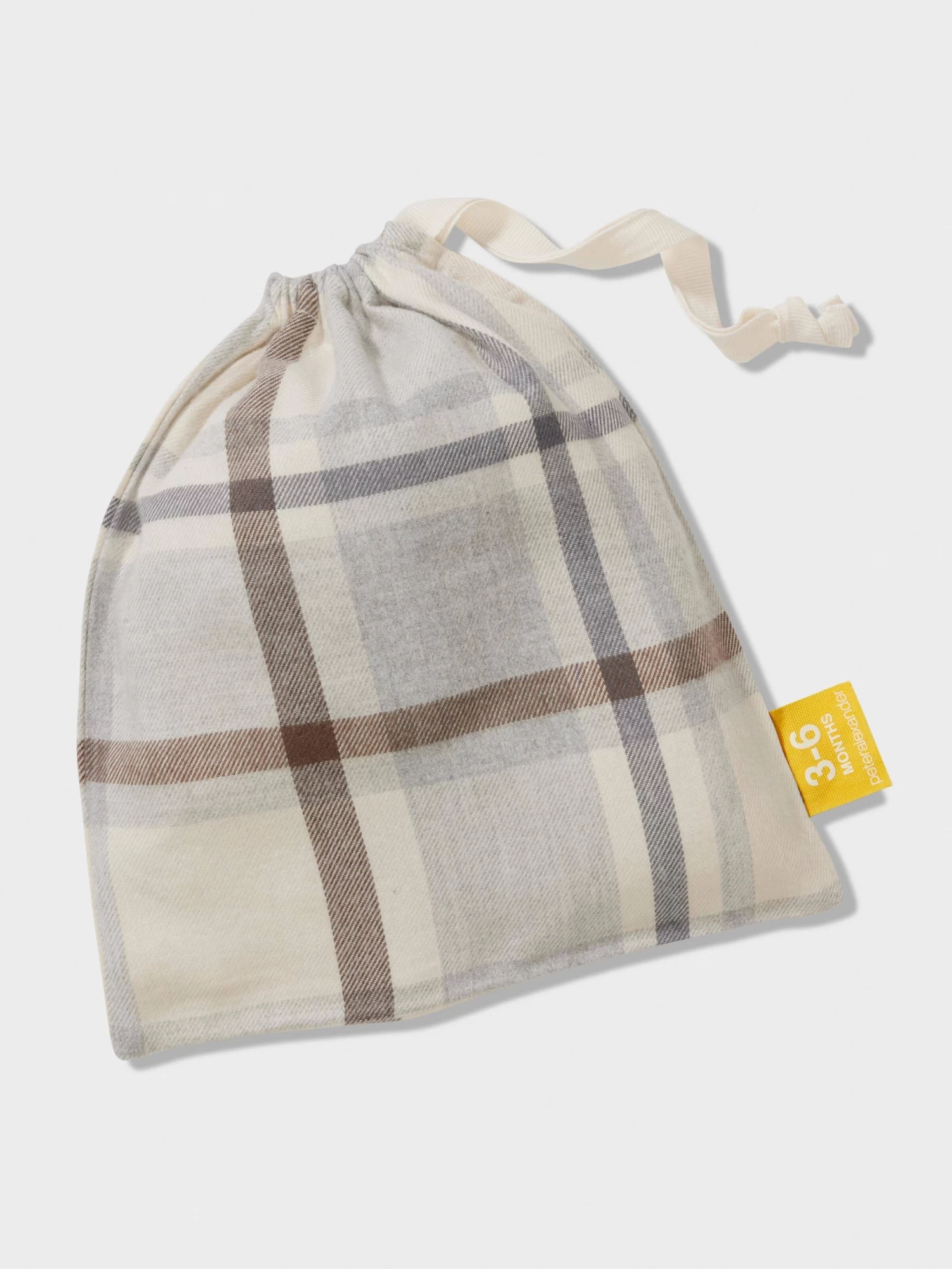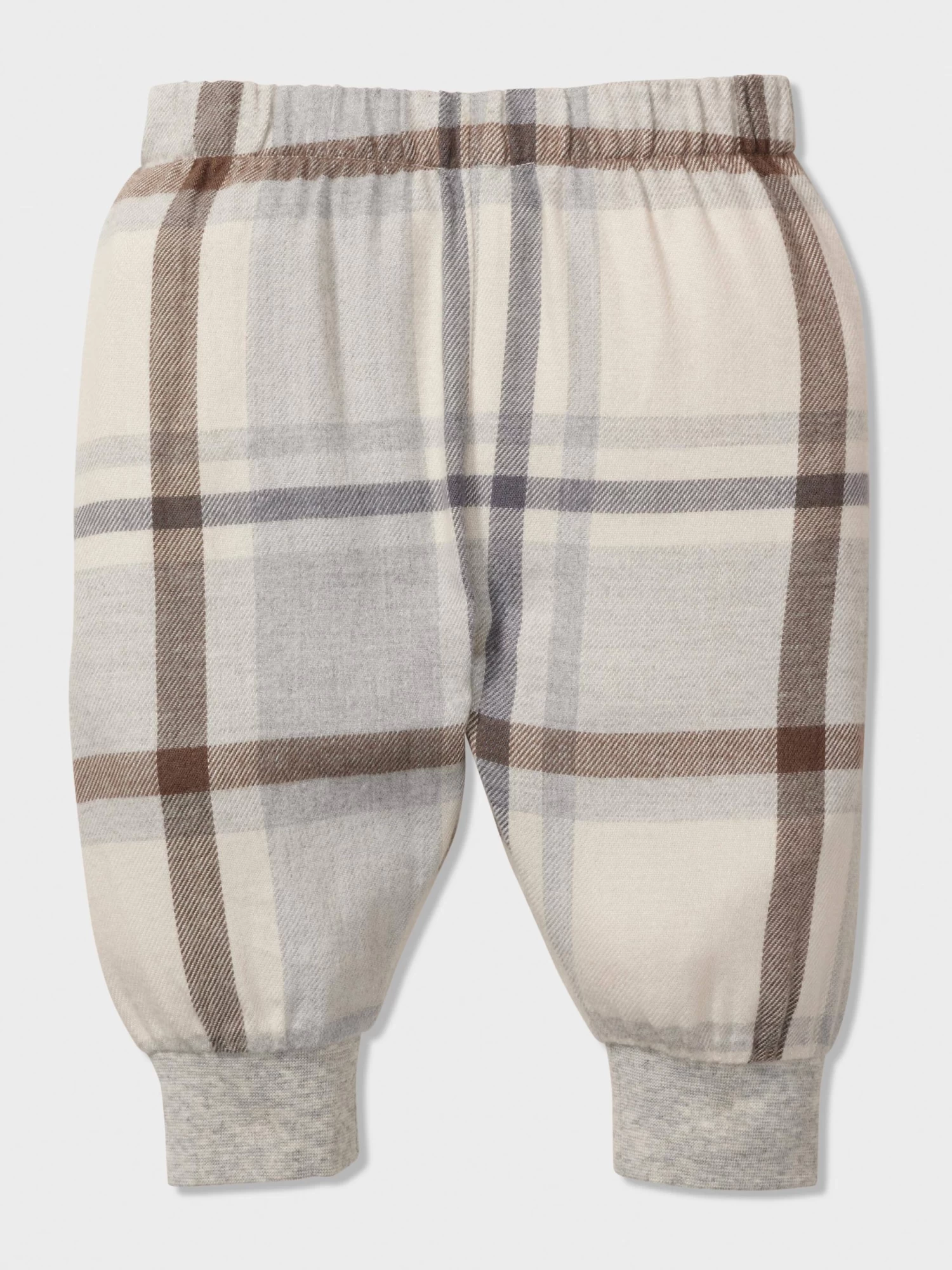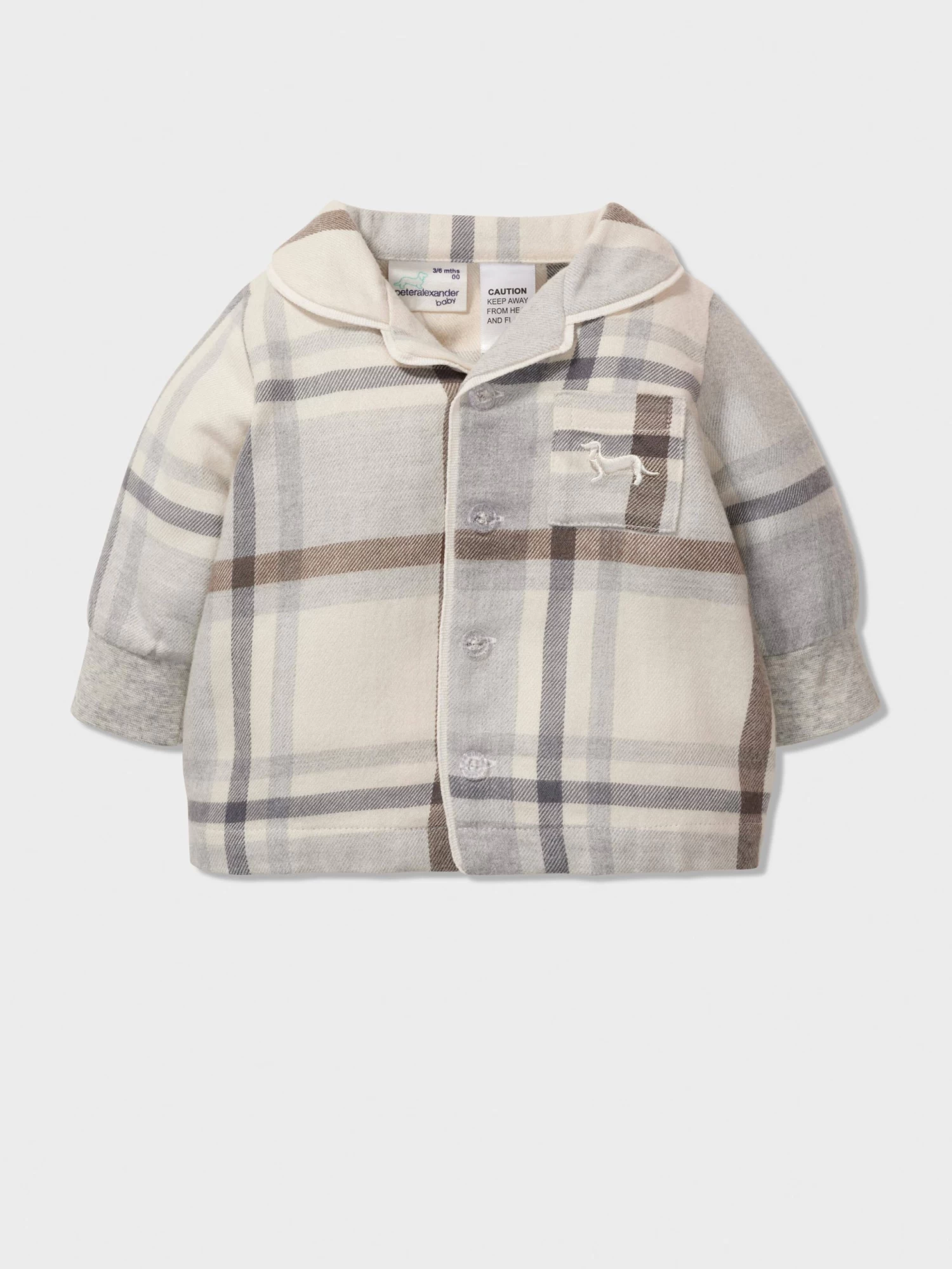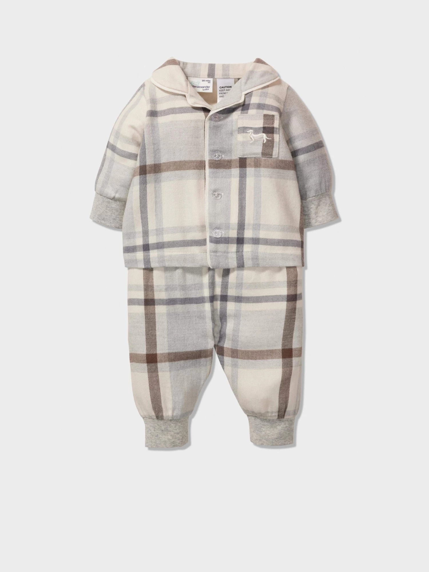 Kit your little one out in this grey check PJ set. Featuring an envelope neckline, button down front and in a soft and cosy bamboo flannelette.
