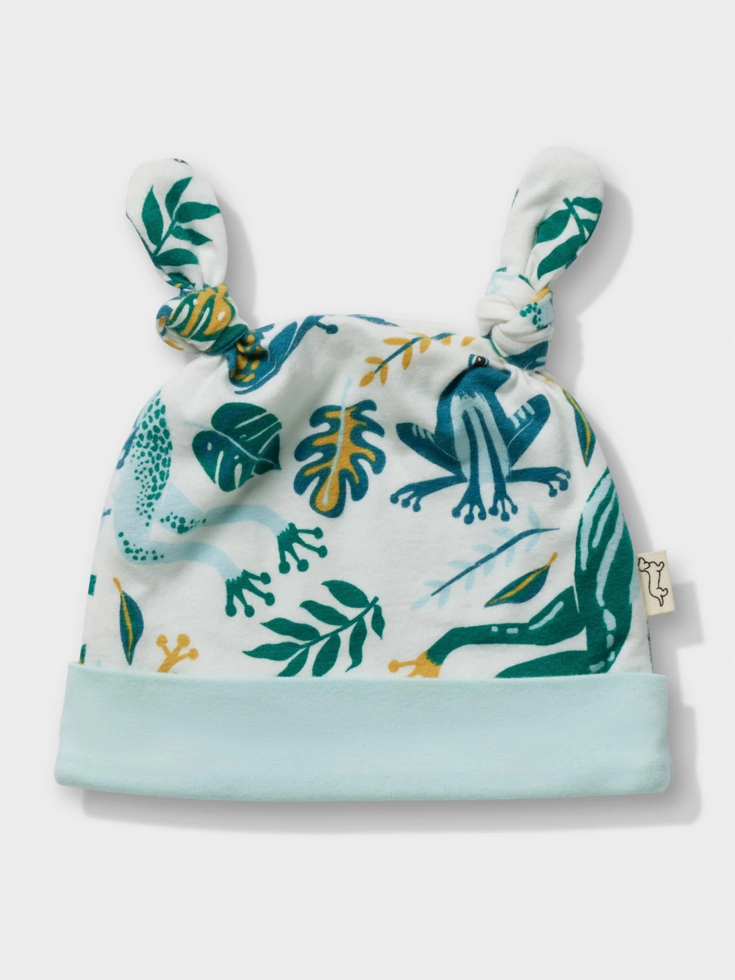 He’ll be hopping into bed with this adorable froggy printed beanie and bootie set. Made with 95% soft organic in-conversion cotton and blended with 5% elastane to ensure you stay comfy and breathable throughout the night. Organic in-conversion cotton refers to products certified organic by the Global Organic Textile Standard (GOTS) as being made with cotton grown on land converting from ‘conventional’ to organic practices. This approach supports more farms on their journey to organic farming. From organic cotton in-conversion to organic dyes free from nasties, we have kept the process pure and simple.