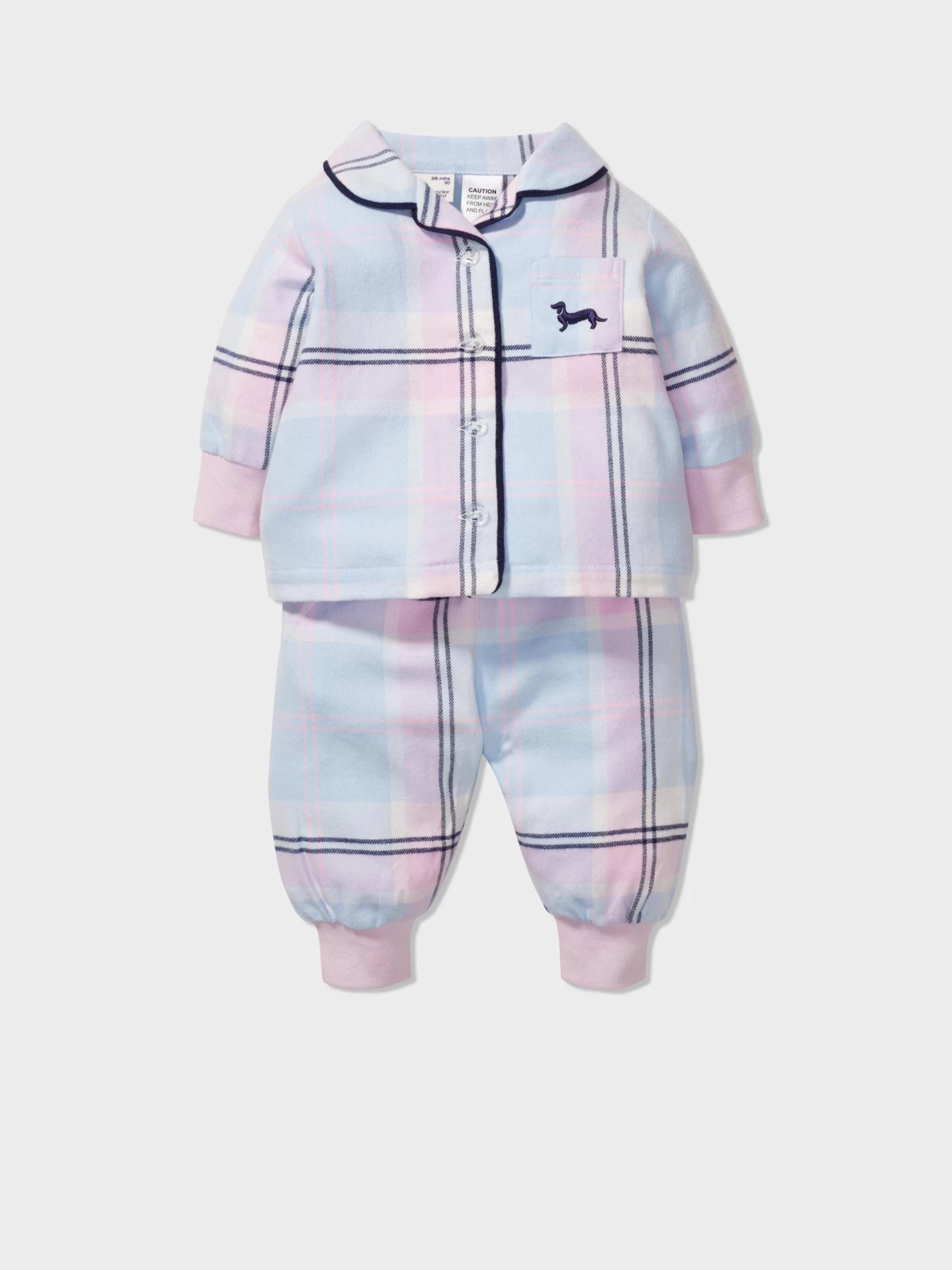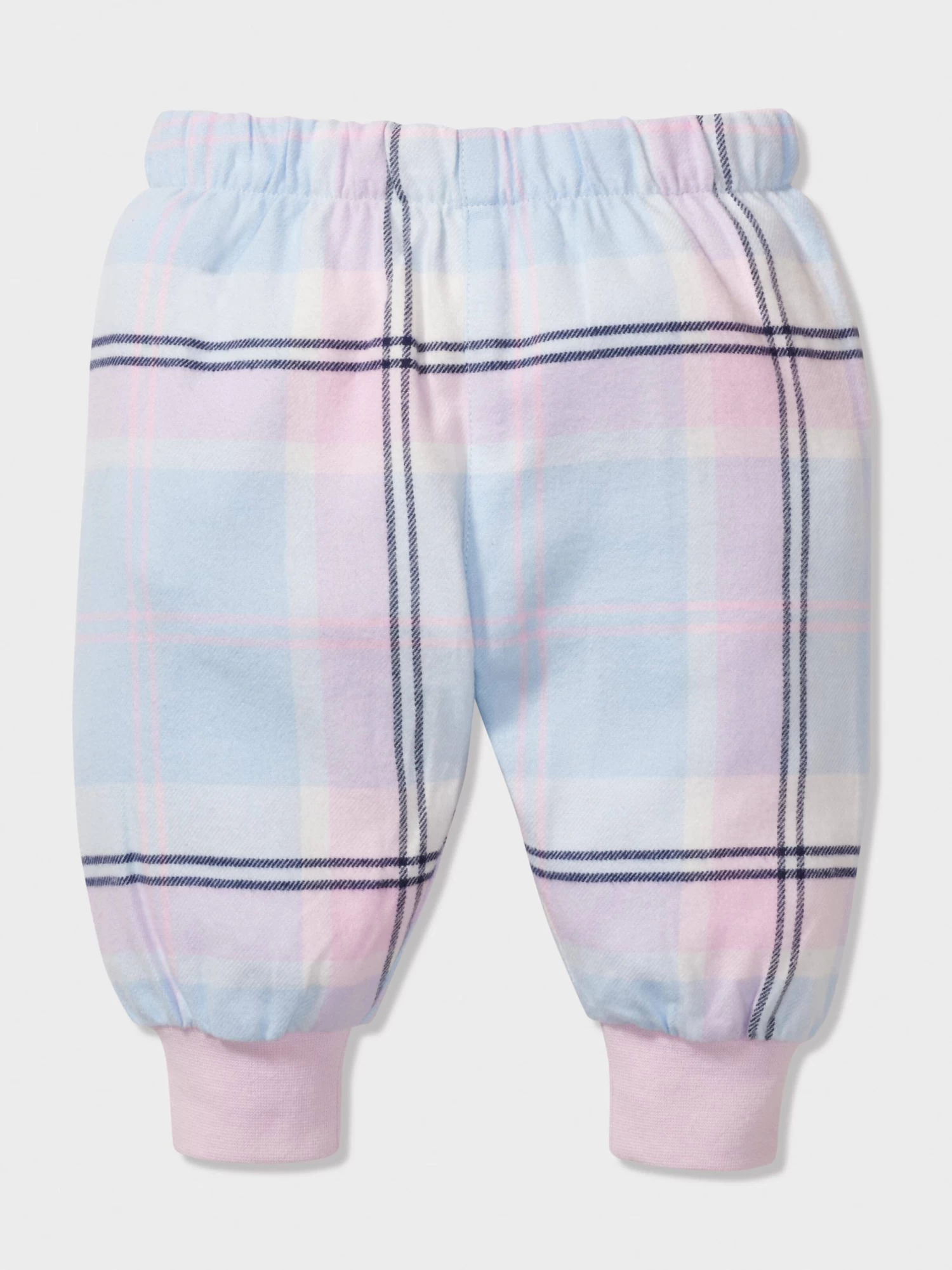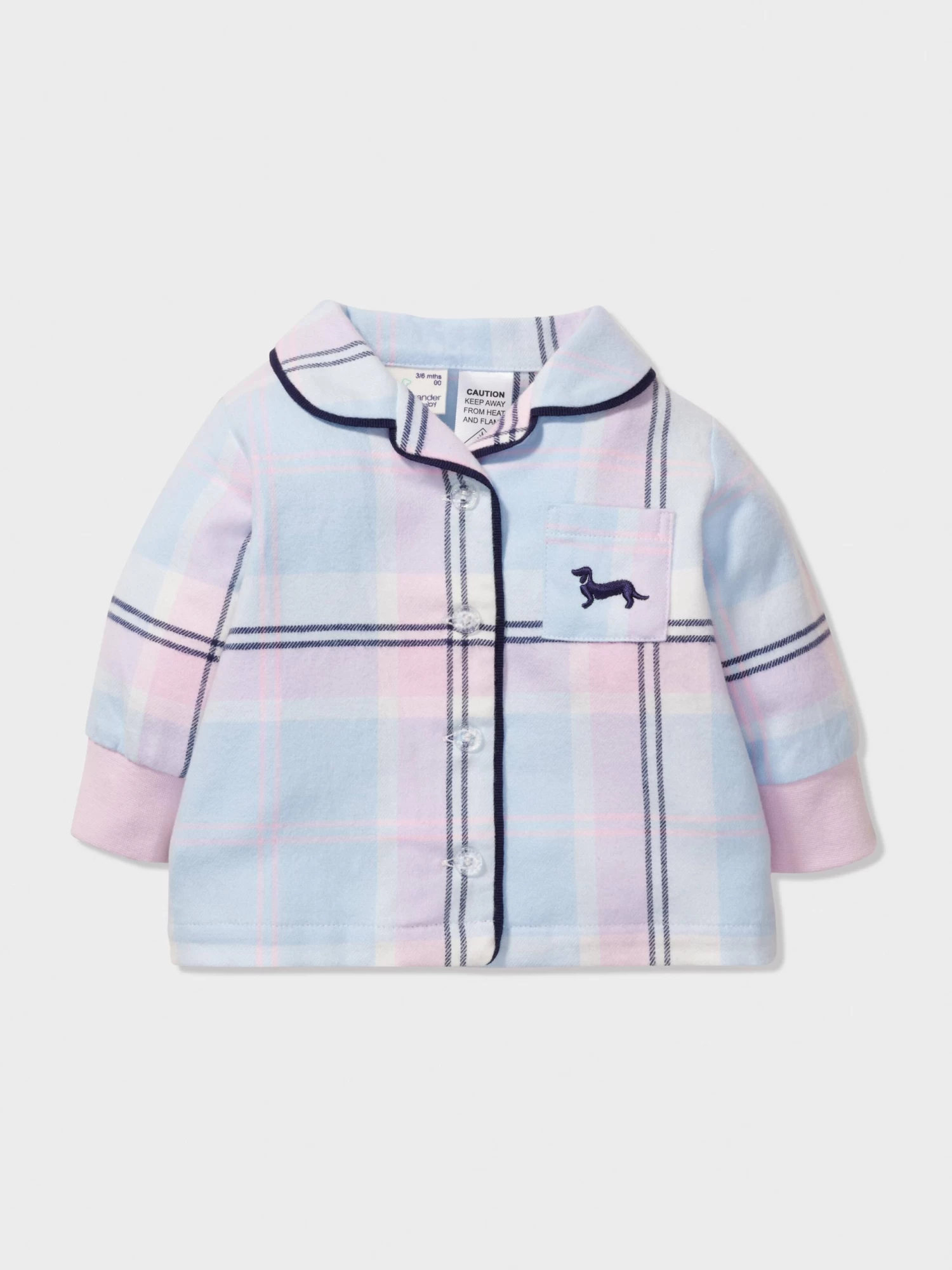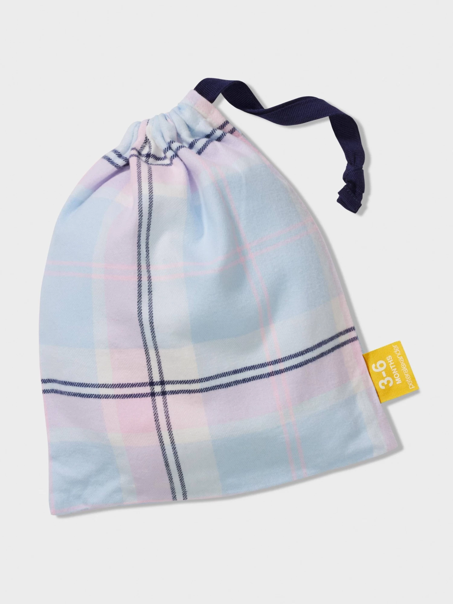 Kit your little one out in this pink and blue check PJ set. Featuring an envelope neckline, button down front and in a soft and cosy bamboo flannelette.