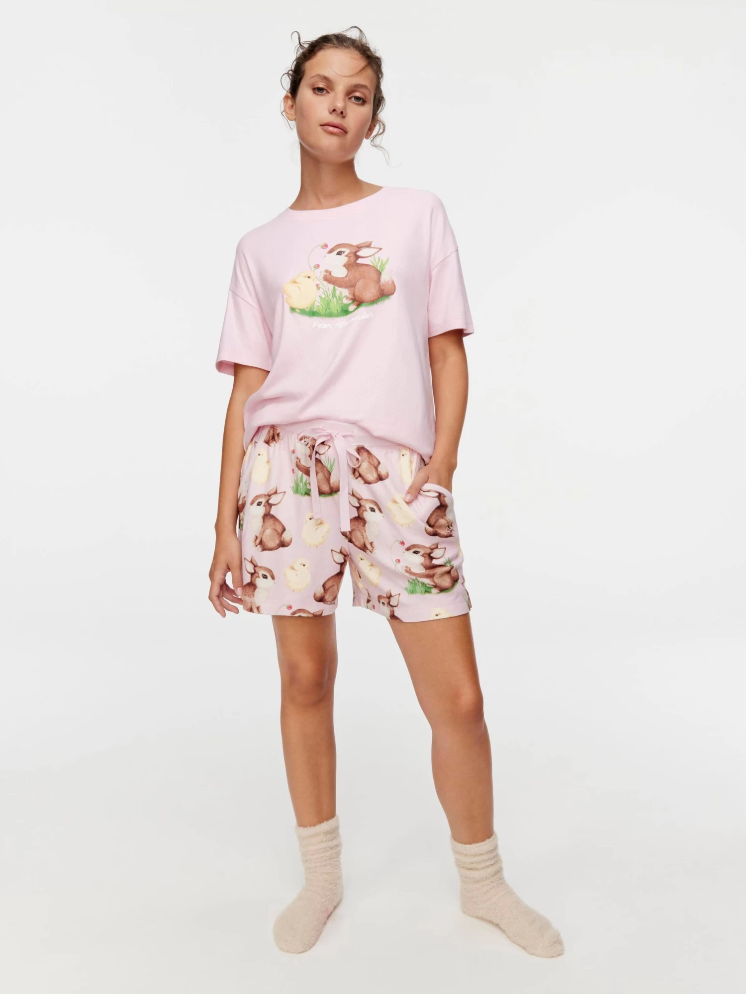 Get ready for Easter in style with these adorable women’s shorts. With a super-cute print of a baby rabbit and chick, these pointelle PJs are a must-have.