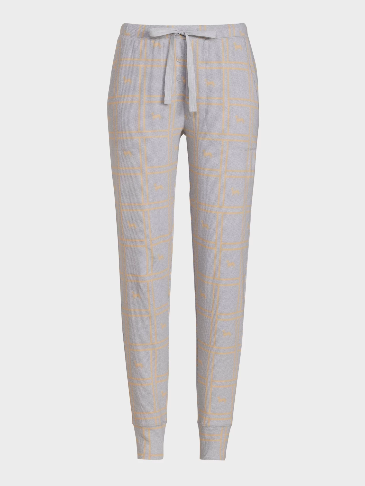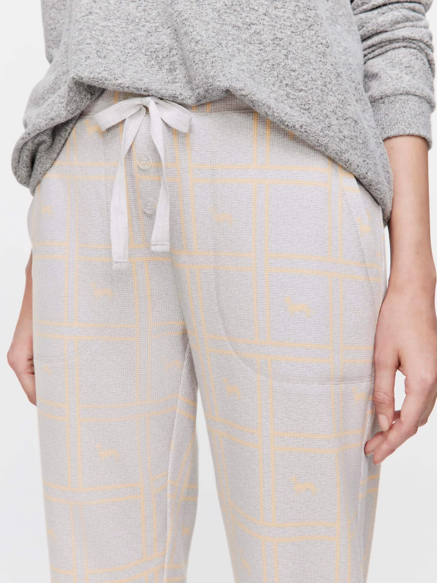 This waffle easy PJ pant is sure to become your new wardrobe staple! Featuring a caramel windowpane print and our iconic penny logo, this pant is perfect for either lounging or sleeping in comfort and style.