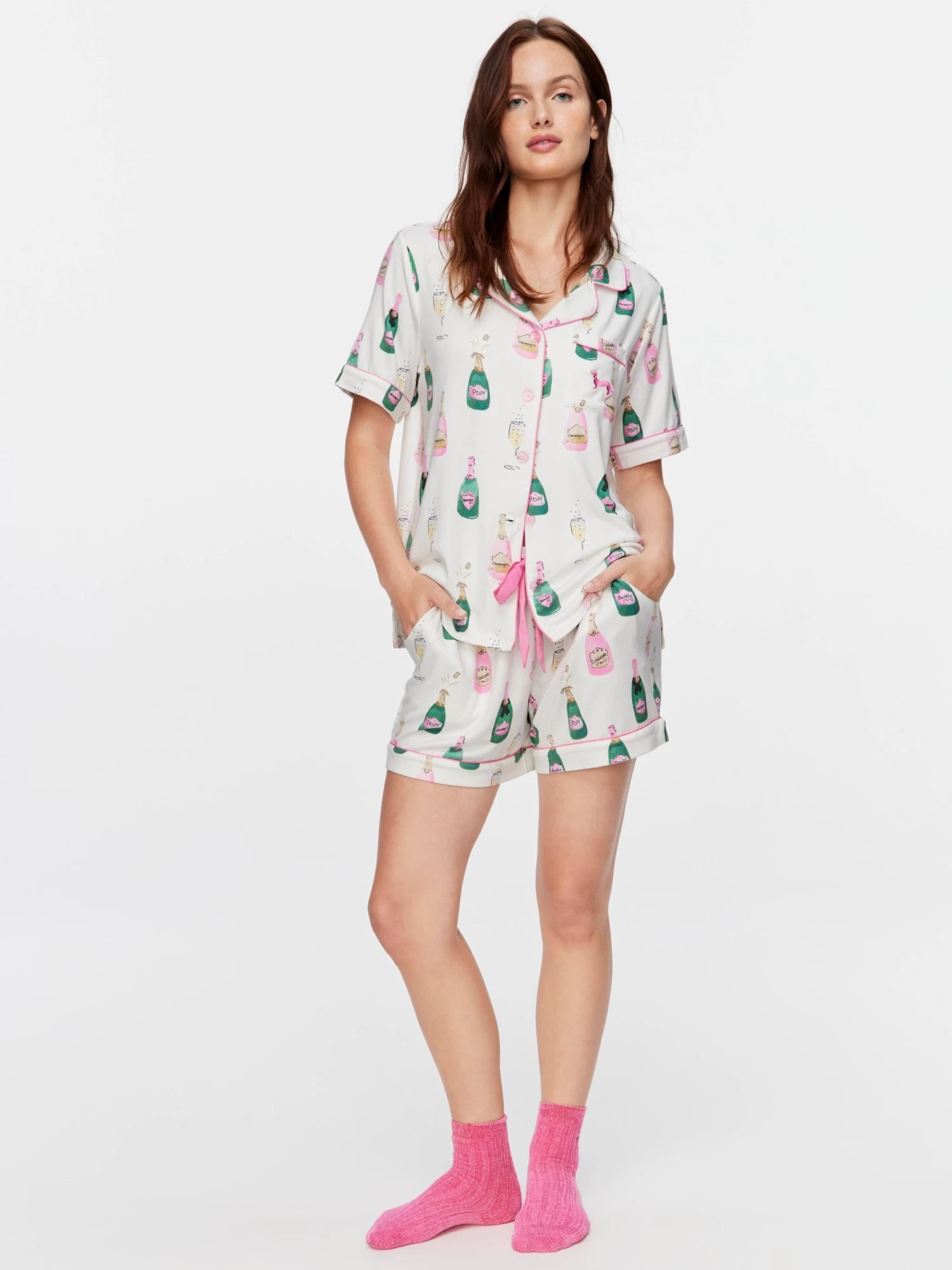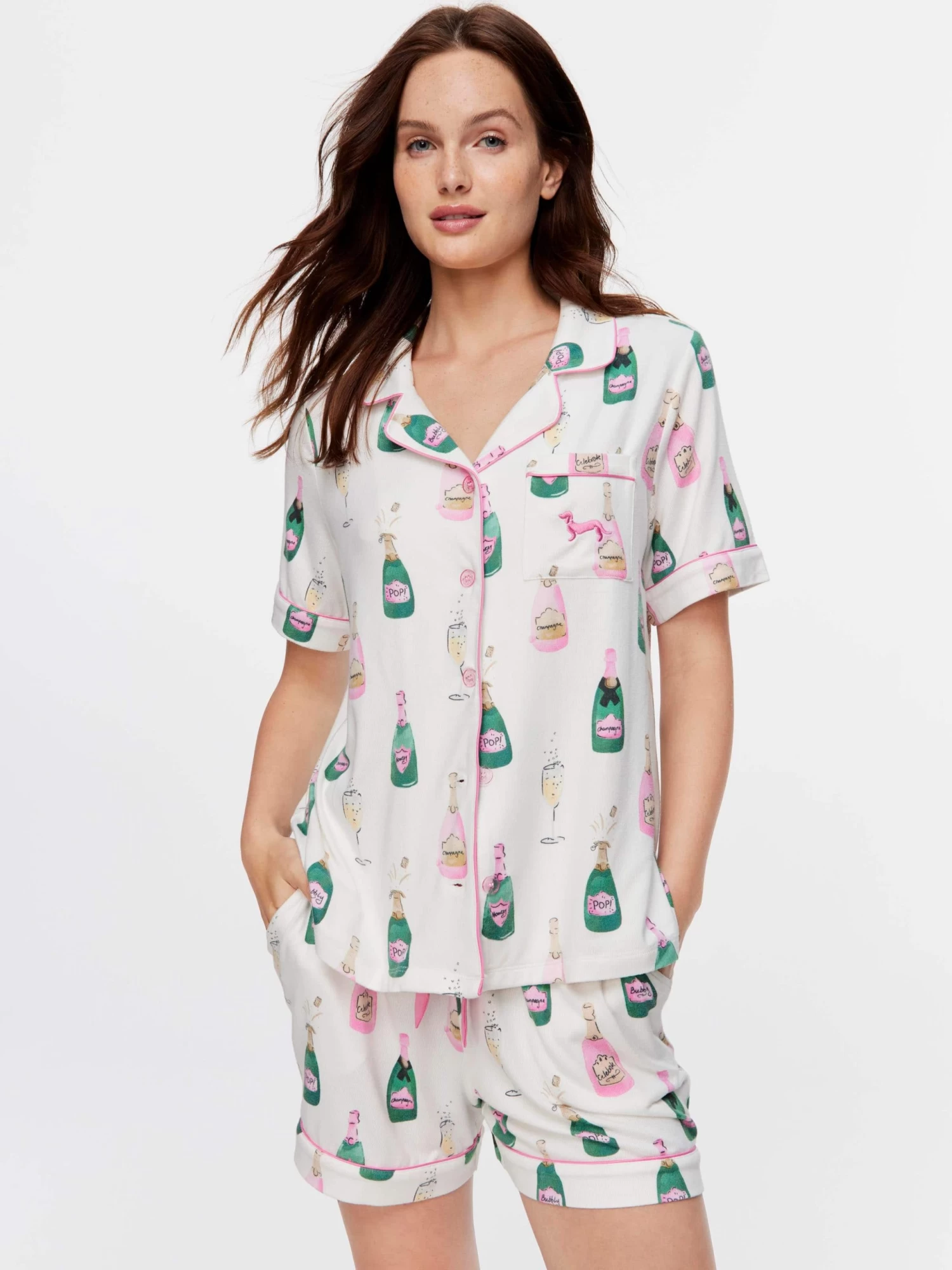 You’ll be bubbling with excitement for these plush women’s PJs! This adorable set features an all-over champagne print and is packaged with a matching gift box, a perfect gift for any bubbly enthusiast. Sip, sip, hooray!