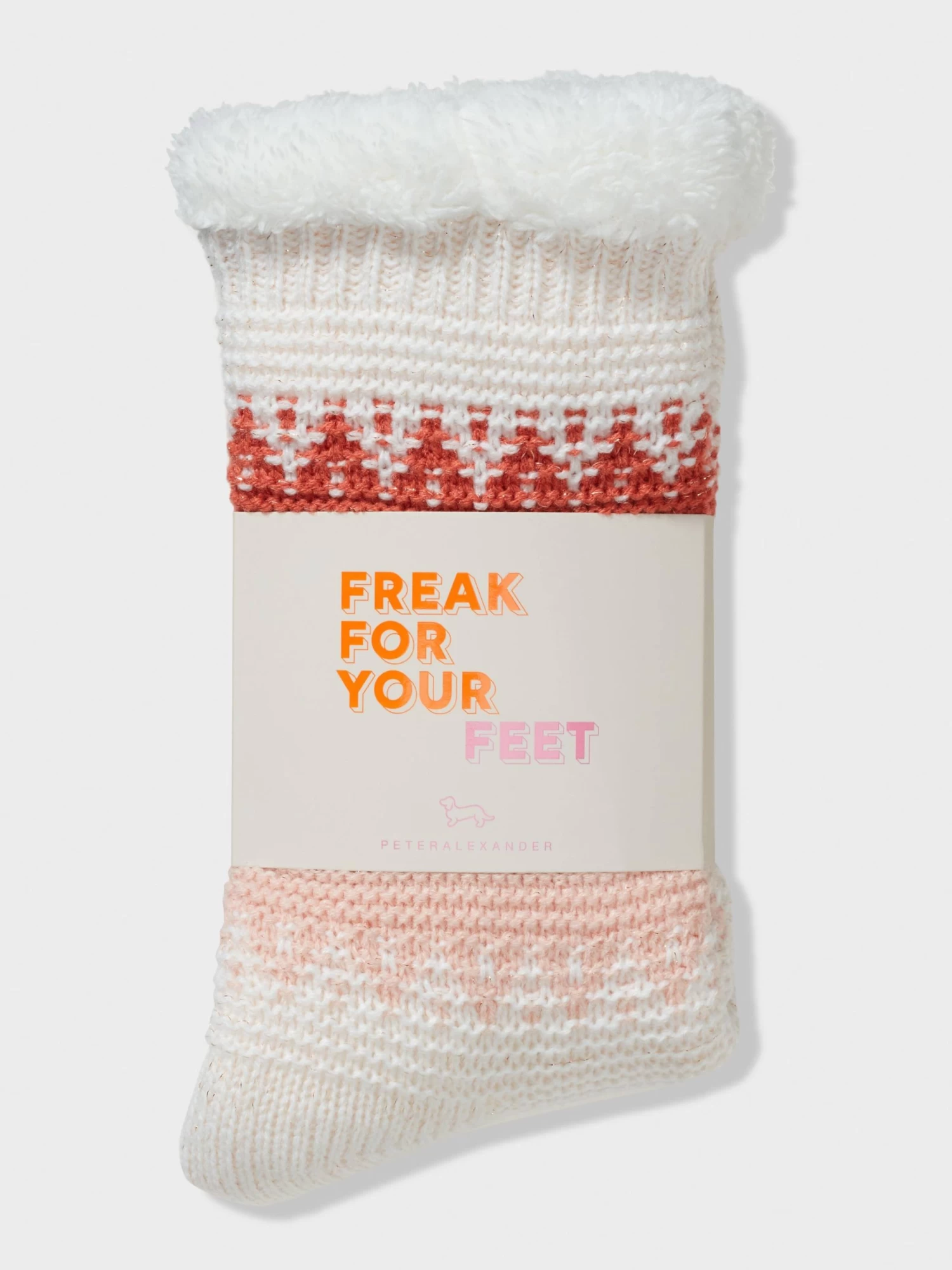 Go off the grid this winter in these cosy women’s socks. Featuring a retro print, these soft acrylic tootsie-warmers are ideal for a snuggly day inside.