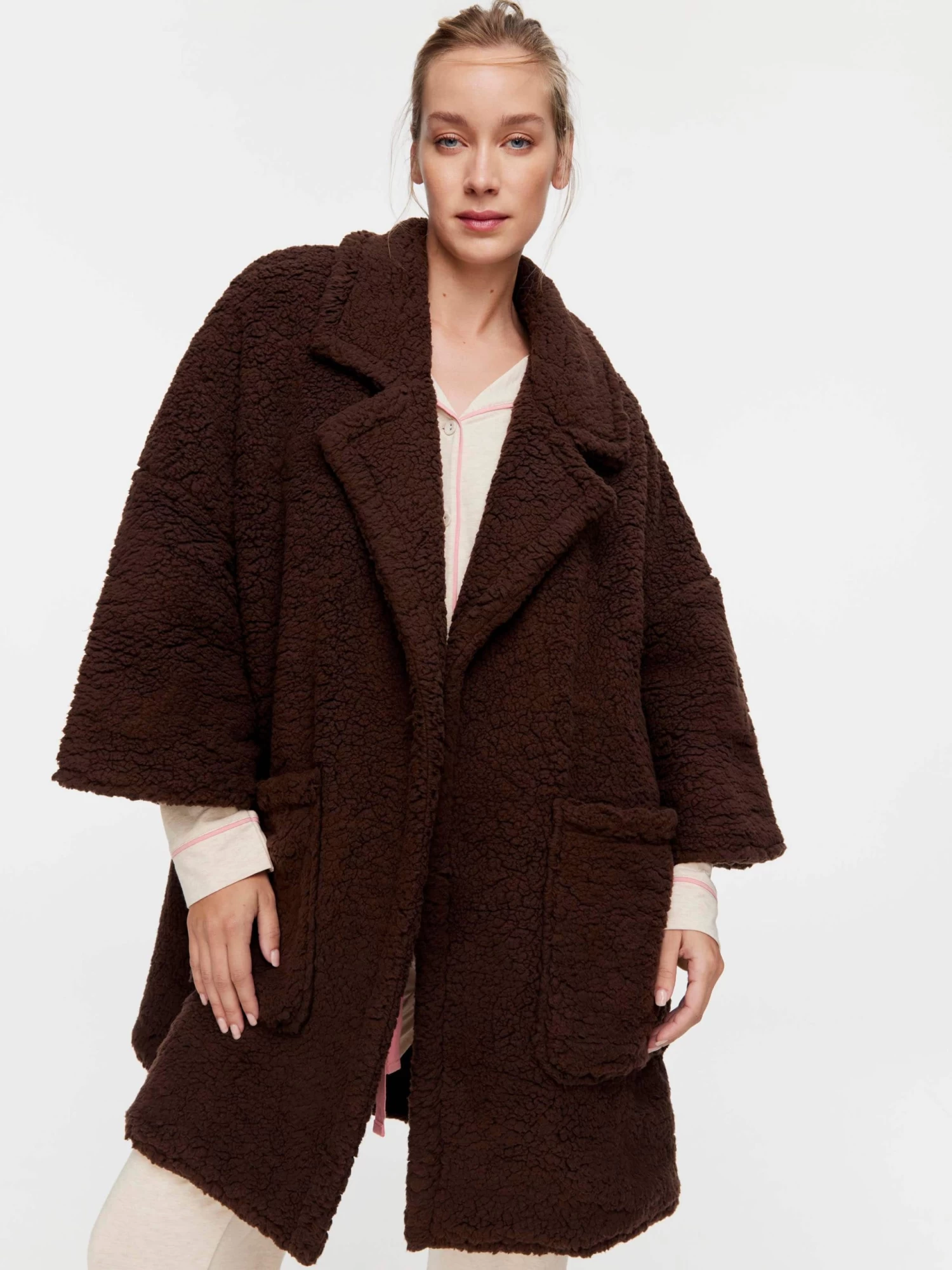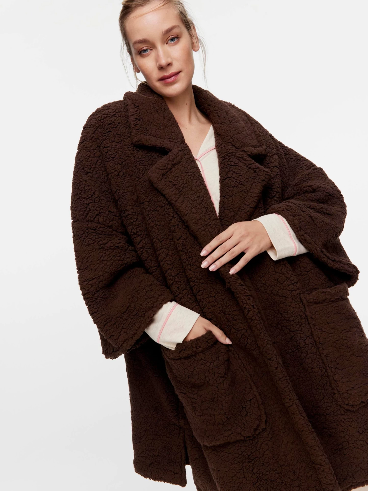 Cosy chic for both inside and outside the house, this oversized cardi features furry teddy fleece and large snuggly pockets.