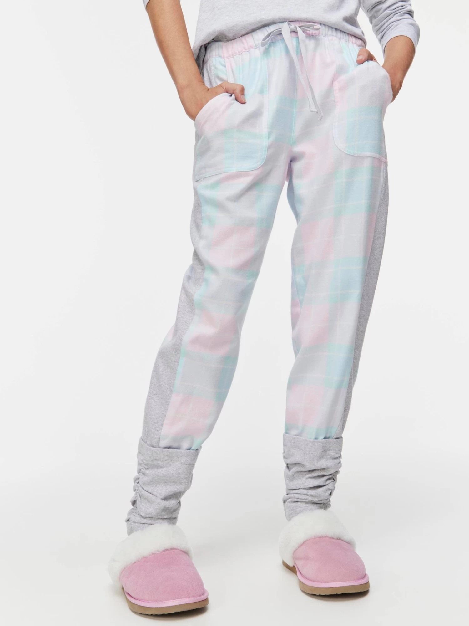 These legwarmers will ensure you’re toasty all over! A pretty pink pattern contrasted with grey marle panelling makes these pants your new favourites.