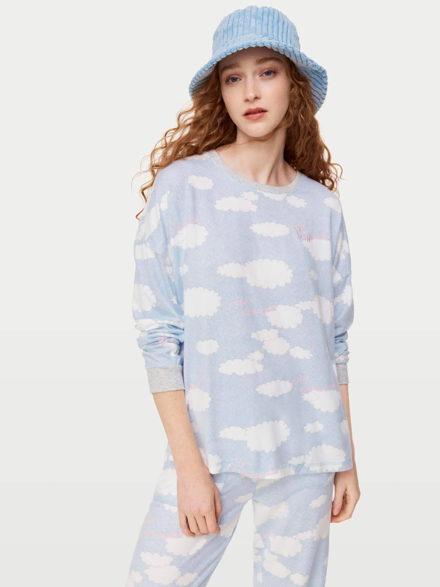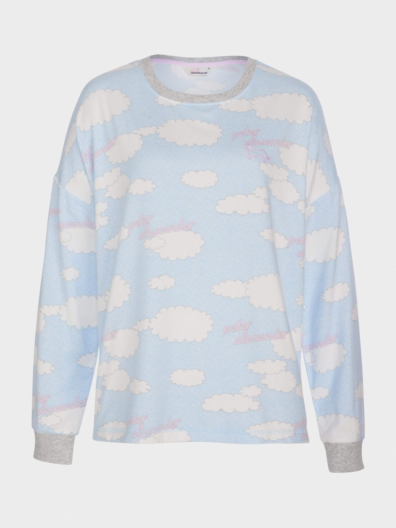 Feel on cloud nine as you lounge in style with this women’s sweater featuring a cloud print on our buttery soft plush fabrication.