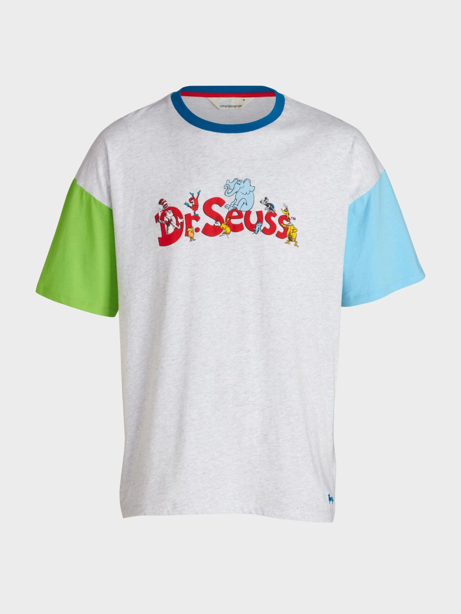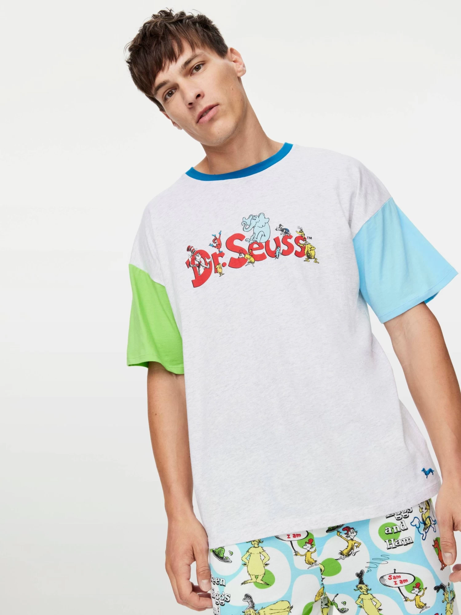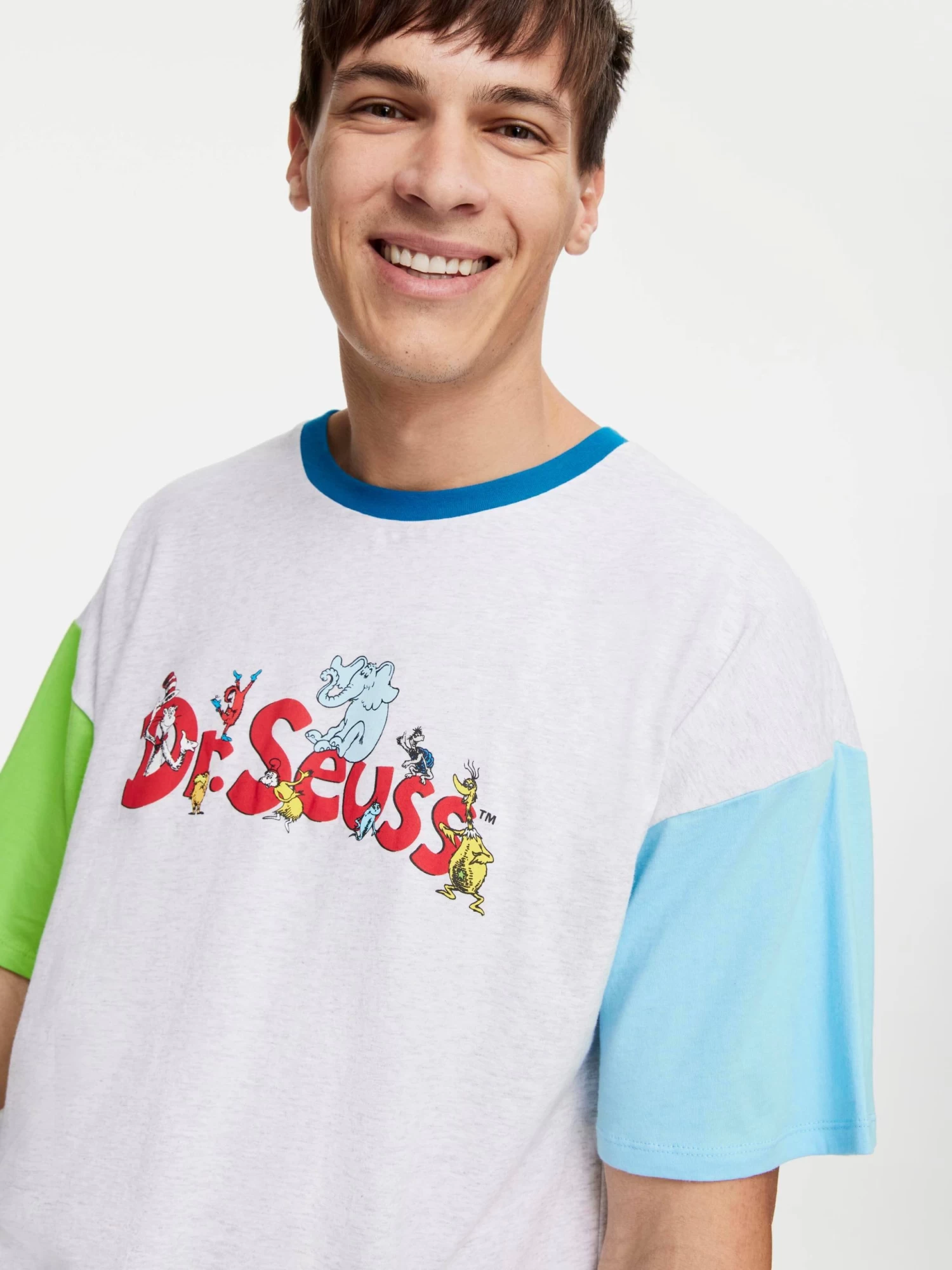 Head to bed feeling nostalgic in this Dr. Seuss tee featuring all your fave characters, such as The Cat in the Hat, Lorax and more!