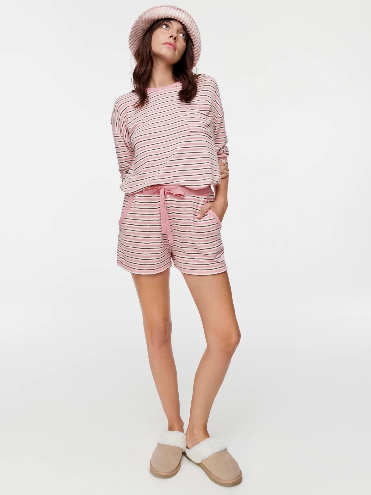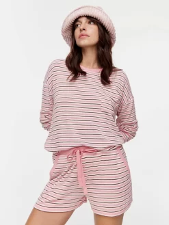 Stripe up your night with this printed pink long short. Made from our ultra soft fuzzy fabrication to keep you cosy all season long!