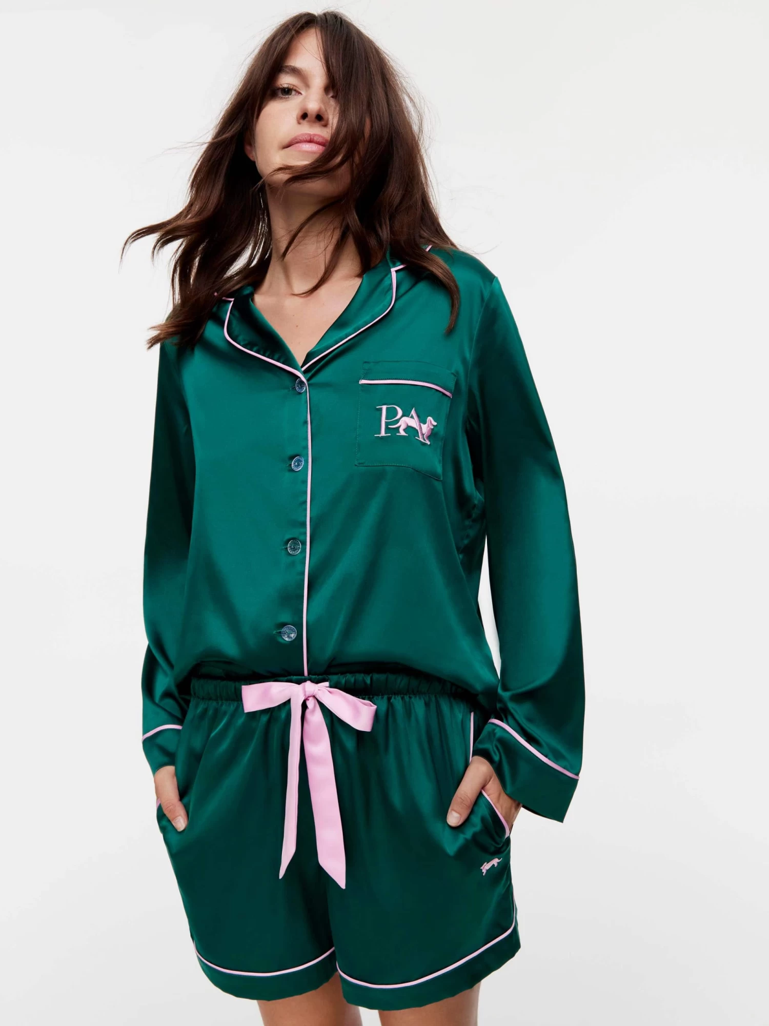Go green this winter with these bold women’s shorts. Made from our silky-smooth poly satin, these PJs are perfect for bringing a pop of colour to dark days.