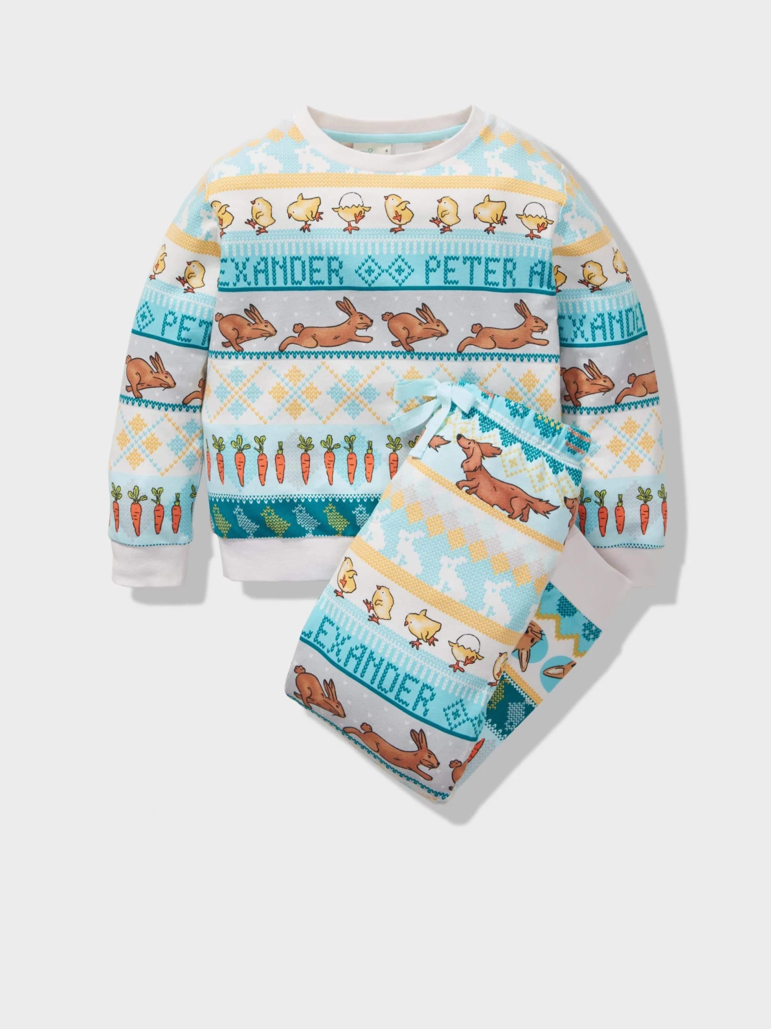 You’ll be hopping for joy, just like Penny, in this adorable set for junior kids. This fun fairisle print features our iconic pooch with an adorable Easter pattern.