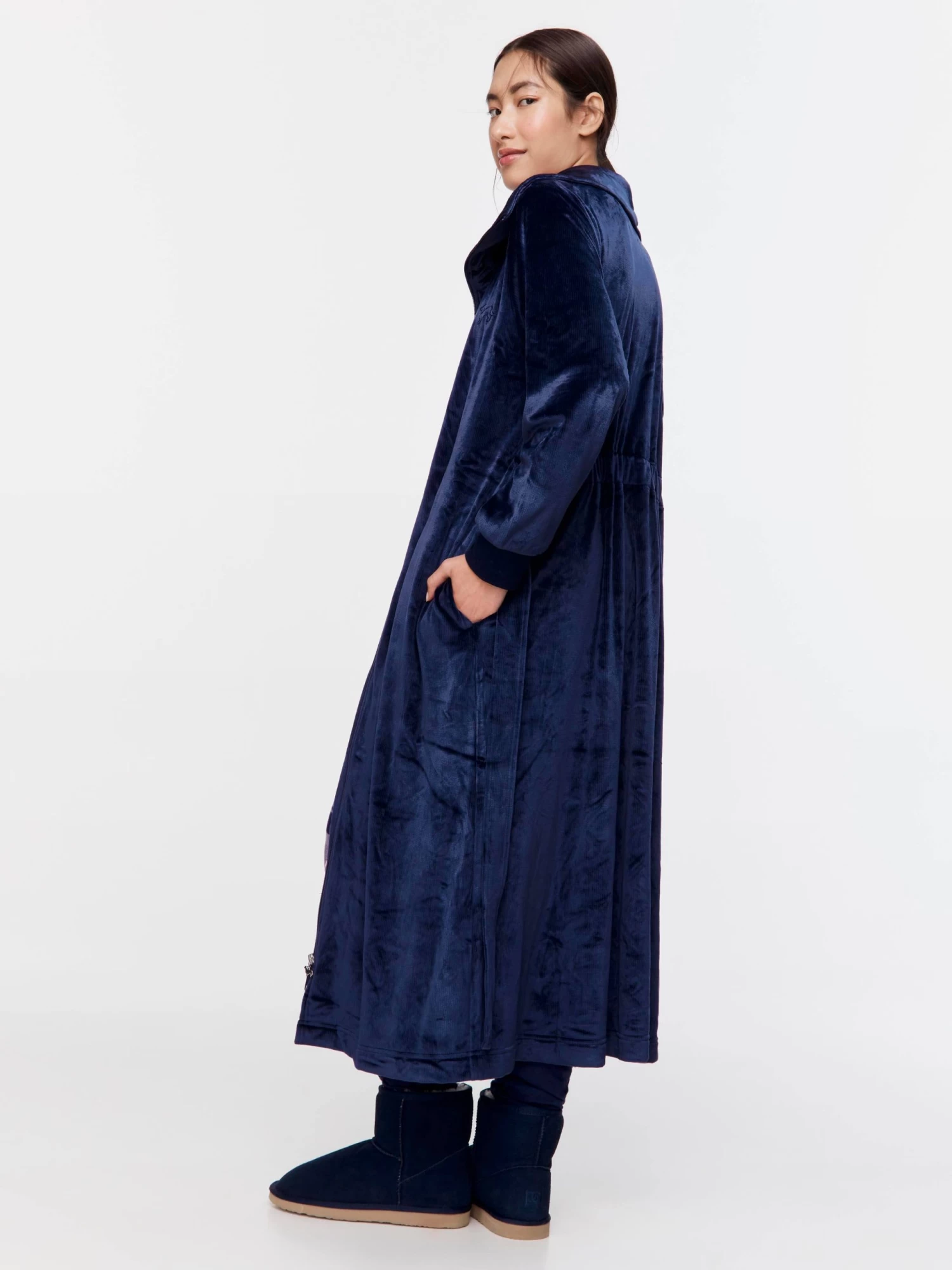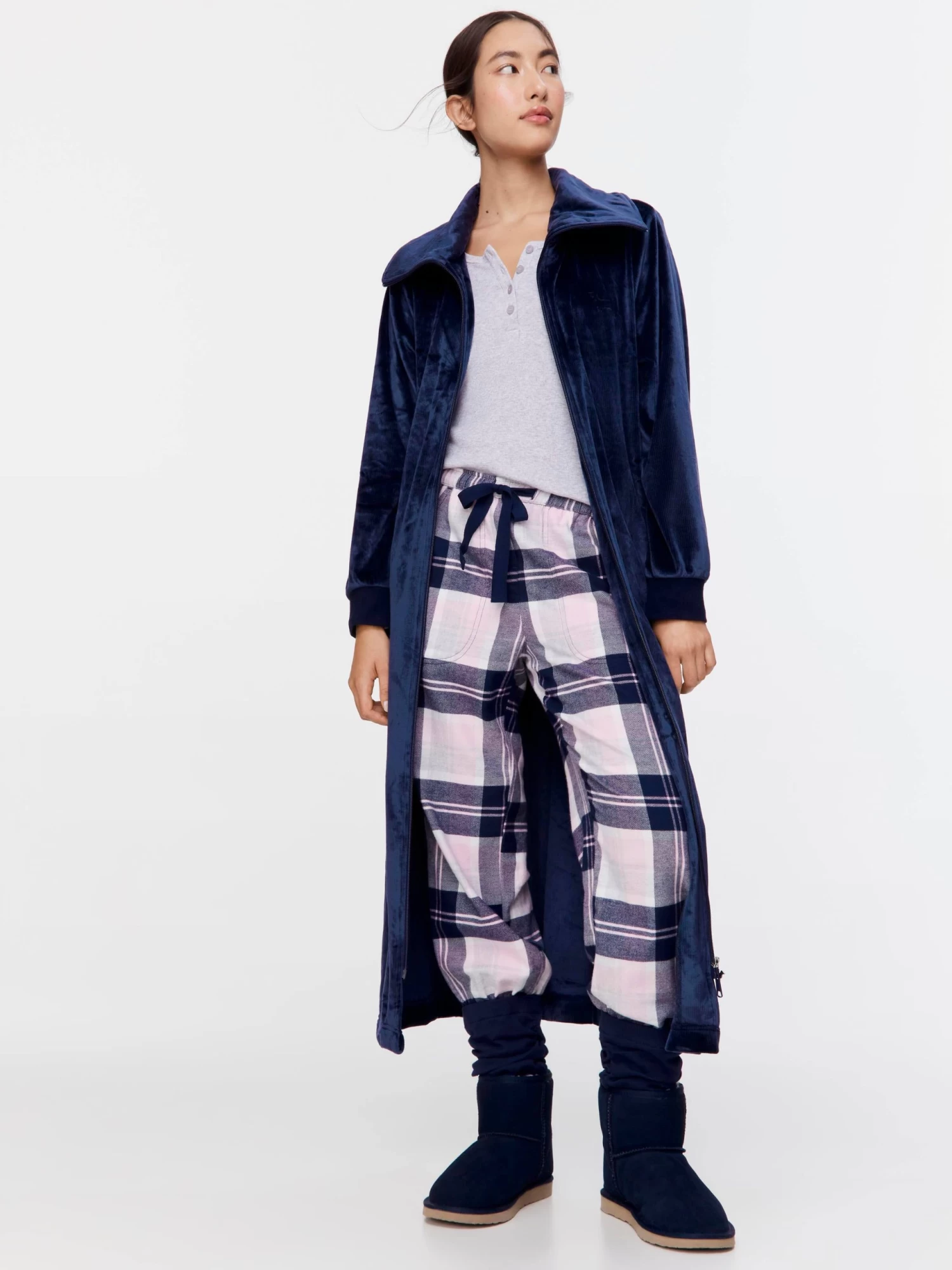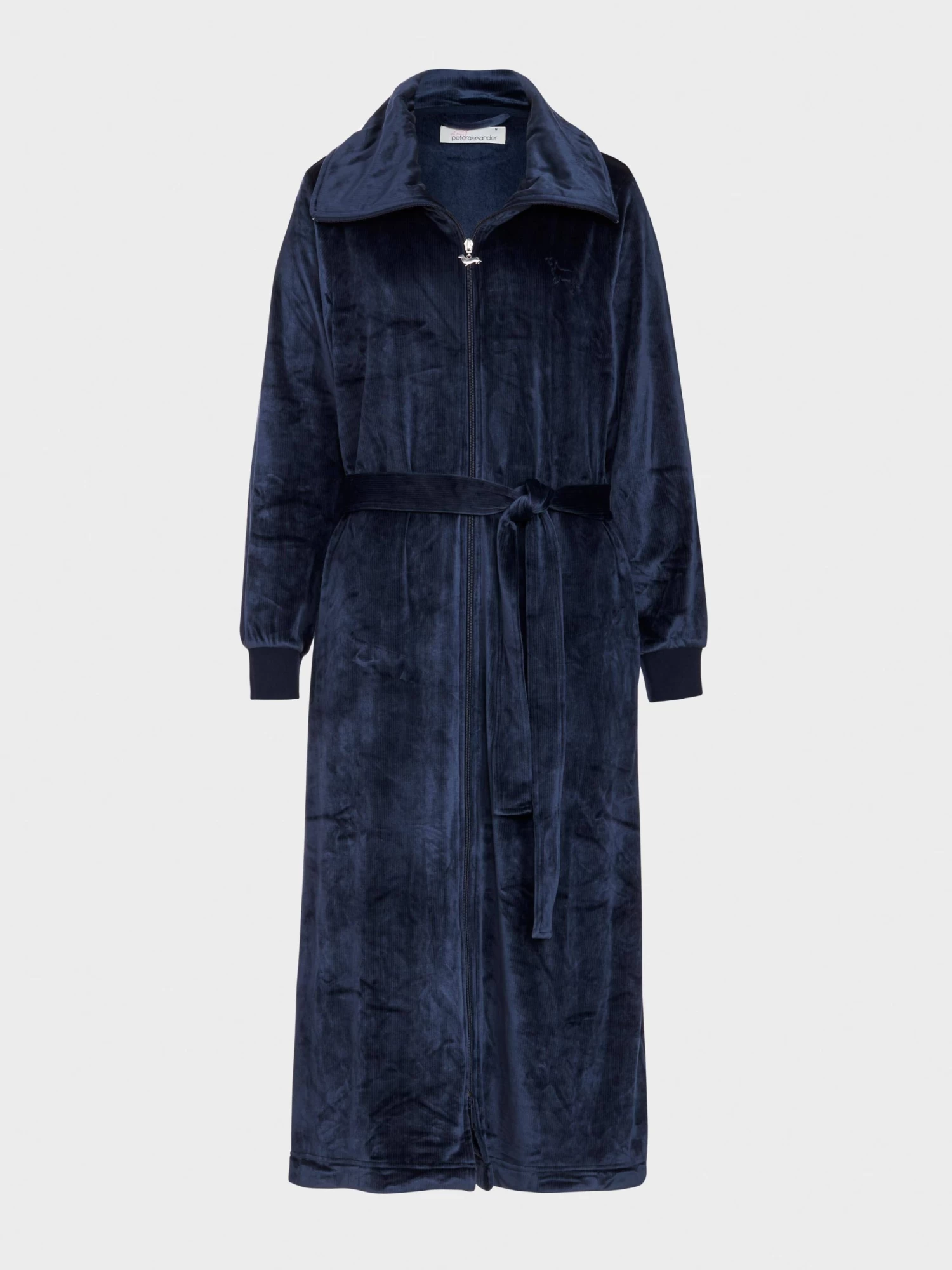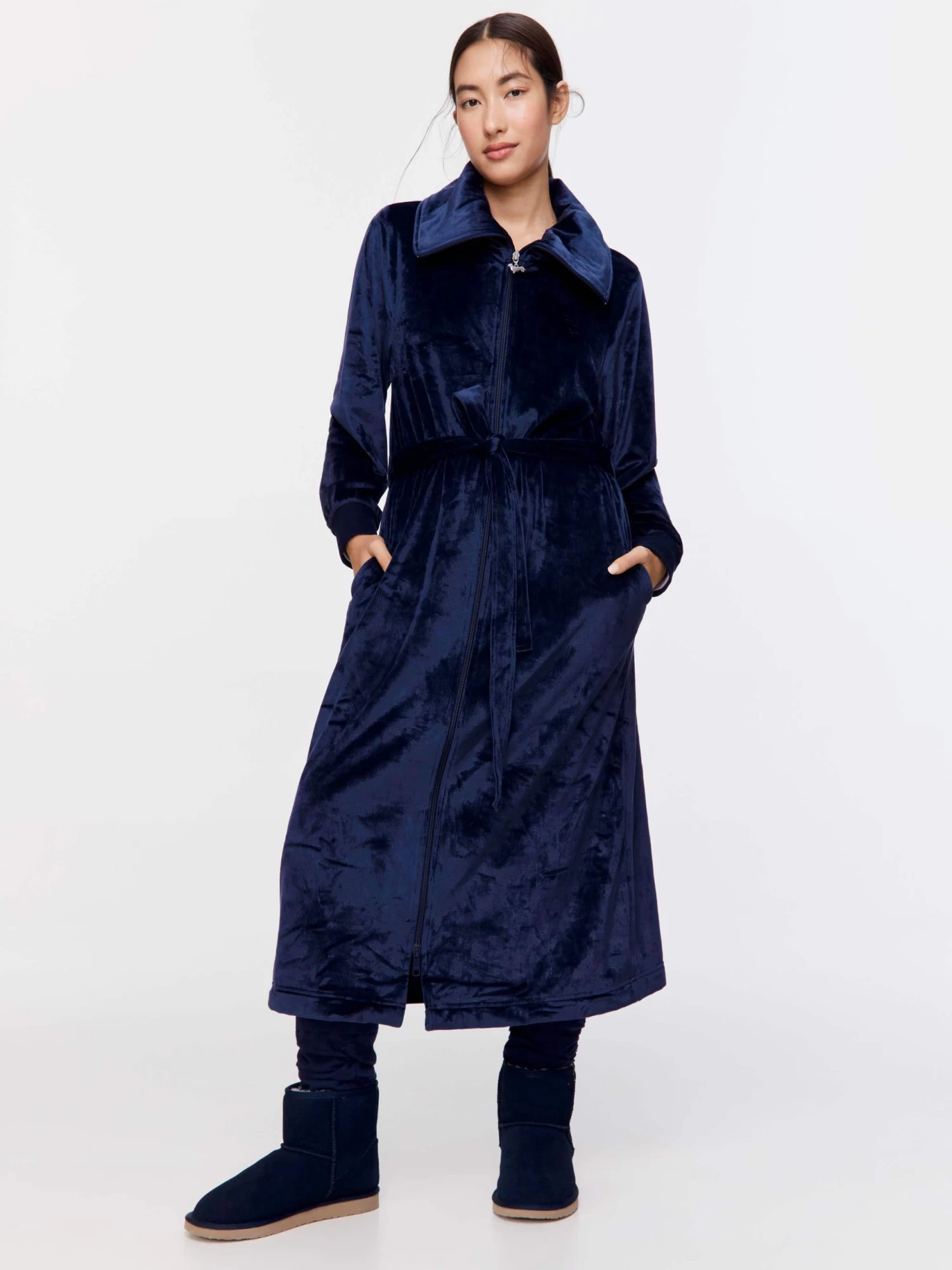 Snuggle up in this adorable women’s dressing gown. This gown zips right to the collar to keep out the cold, and also features a waist tie for extra flexibility.