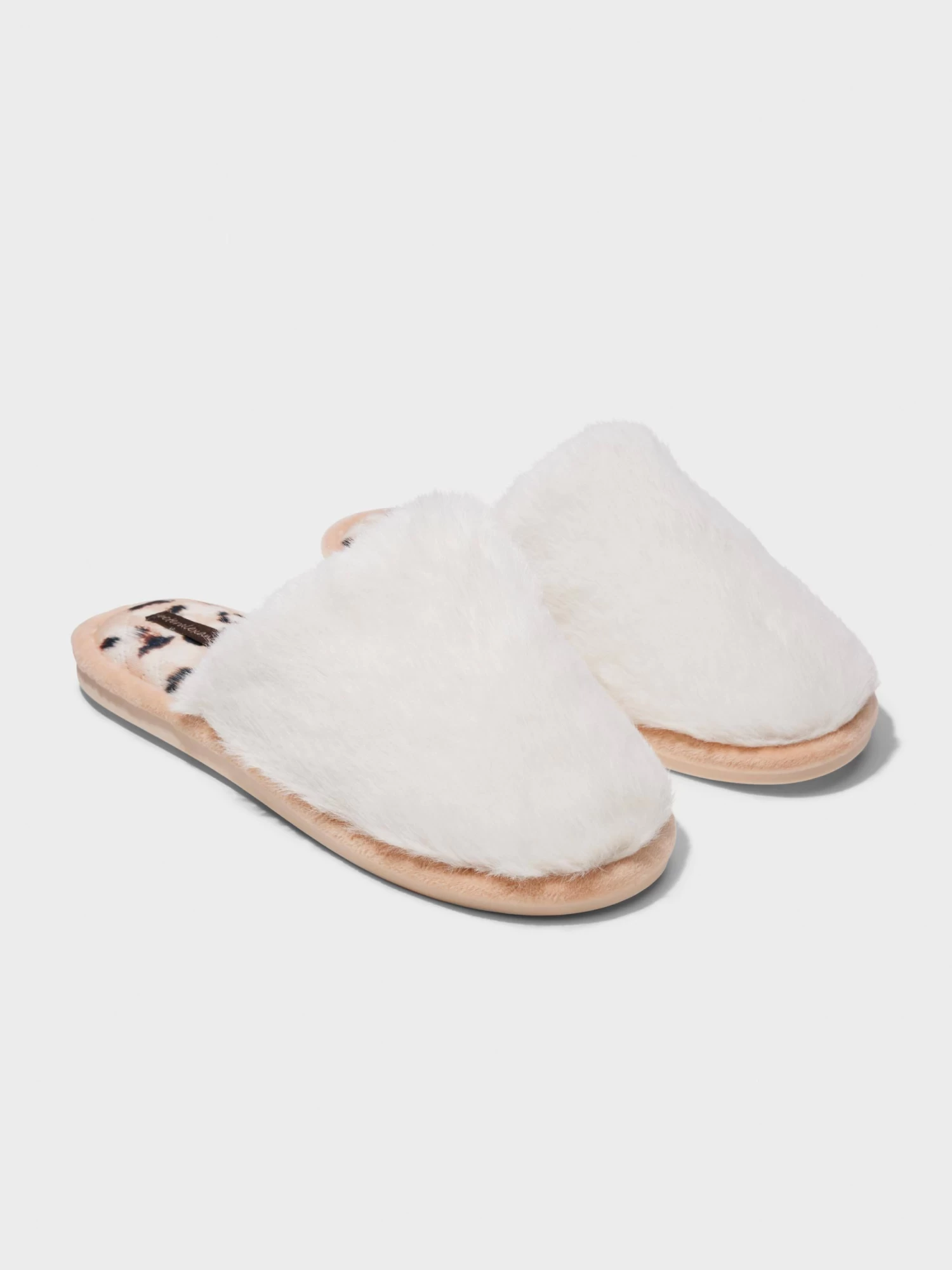Slip into the wild side with these stunning scuffs! Featuring a leopard print foot bed and fluffy closed toe outer, your toes will be feeling toasty warm all day long.