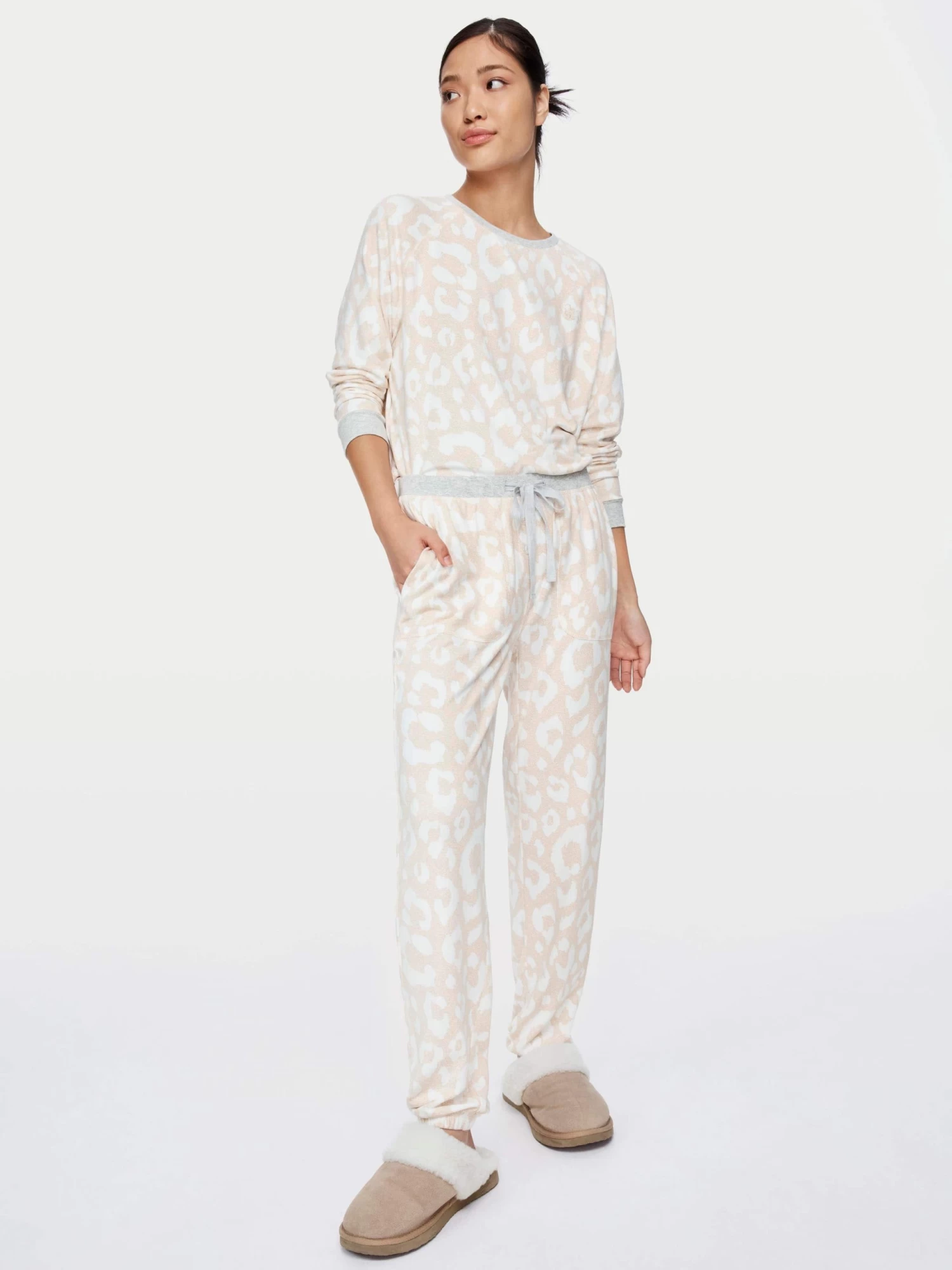 Go wild for this plush pant, that’s sure to be your ultimate sleepwear essential. Perfect for lounging around the house, or popping into bed. This leopard print easy pant matches perfectly with the plush sweater for the ultimate PJ combo.