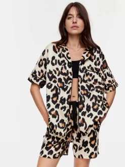Go wild for this bold printed PJ set, featuring a short sleeve shirt and long length shorts packed into a matching fabric bag for easy convenience. Made from our lightweight cotton sateen fabrication to keep you comfy all winter long!