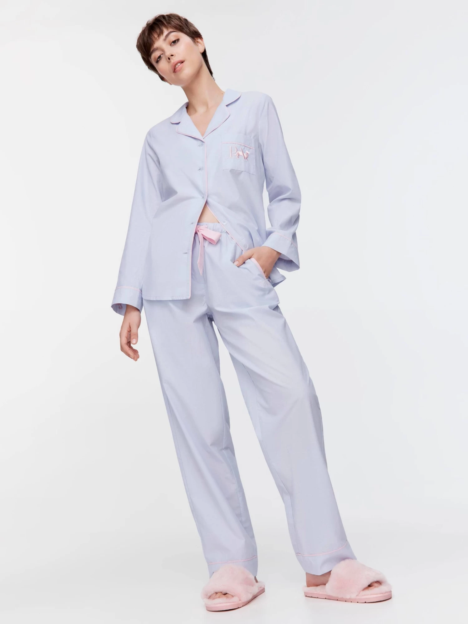 Look lovely in lilac with this classic cotton PJ pant. Featuring pink trims and detailing, this one’s perfect paired with the matching shirt.