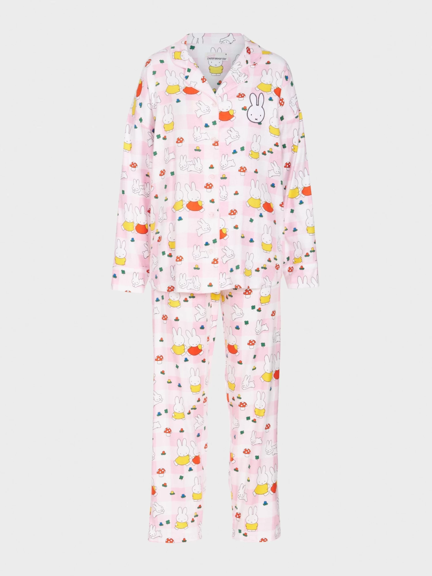 Snuggle up in this cosy bamboo flannelette PJ set in an all over Miffy print. Featuring an oversized long sleeve shirt and matching classic PJ pants to keep you warm as the weather cools down.