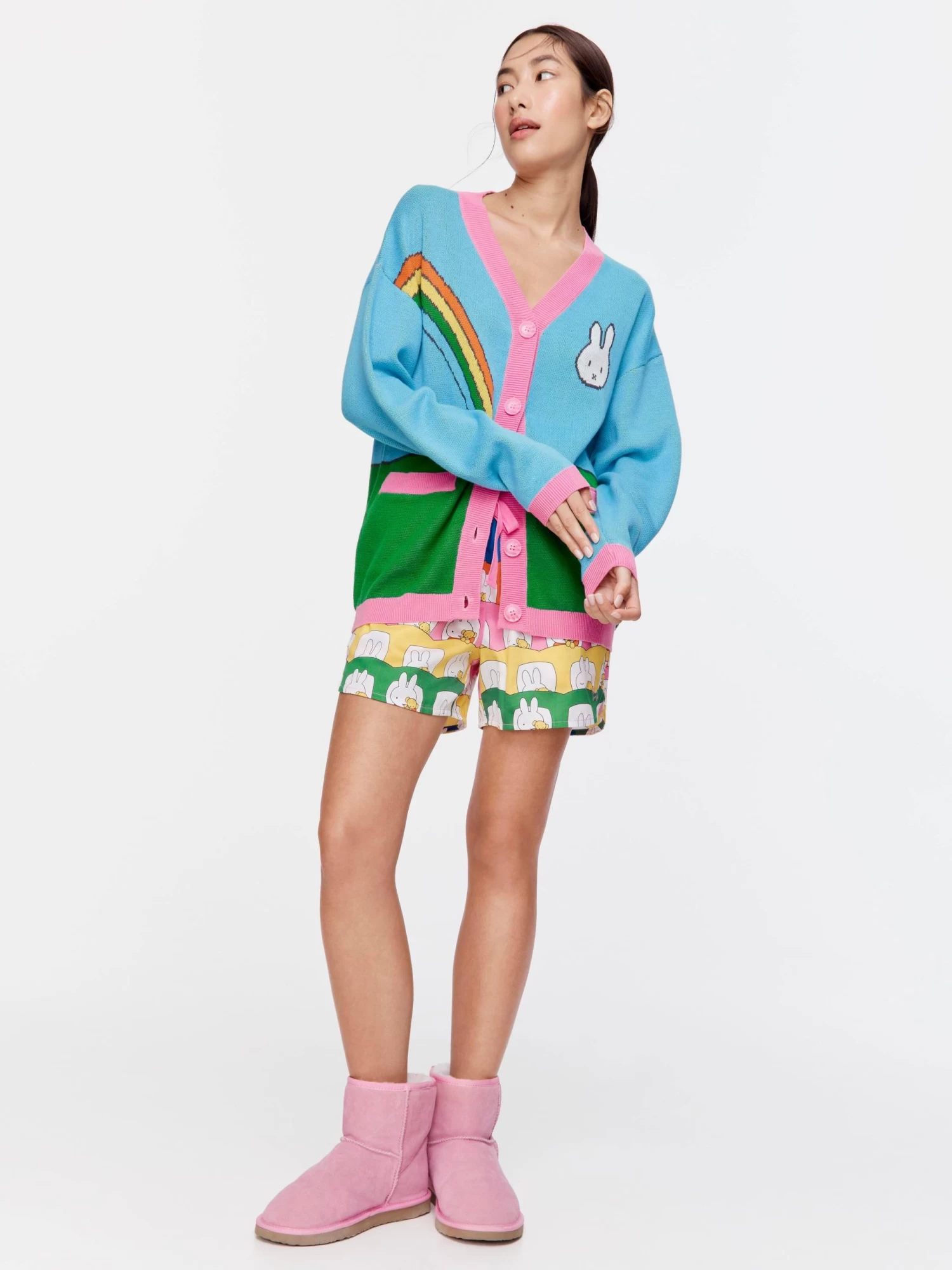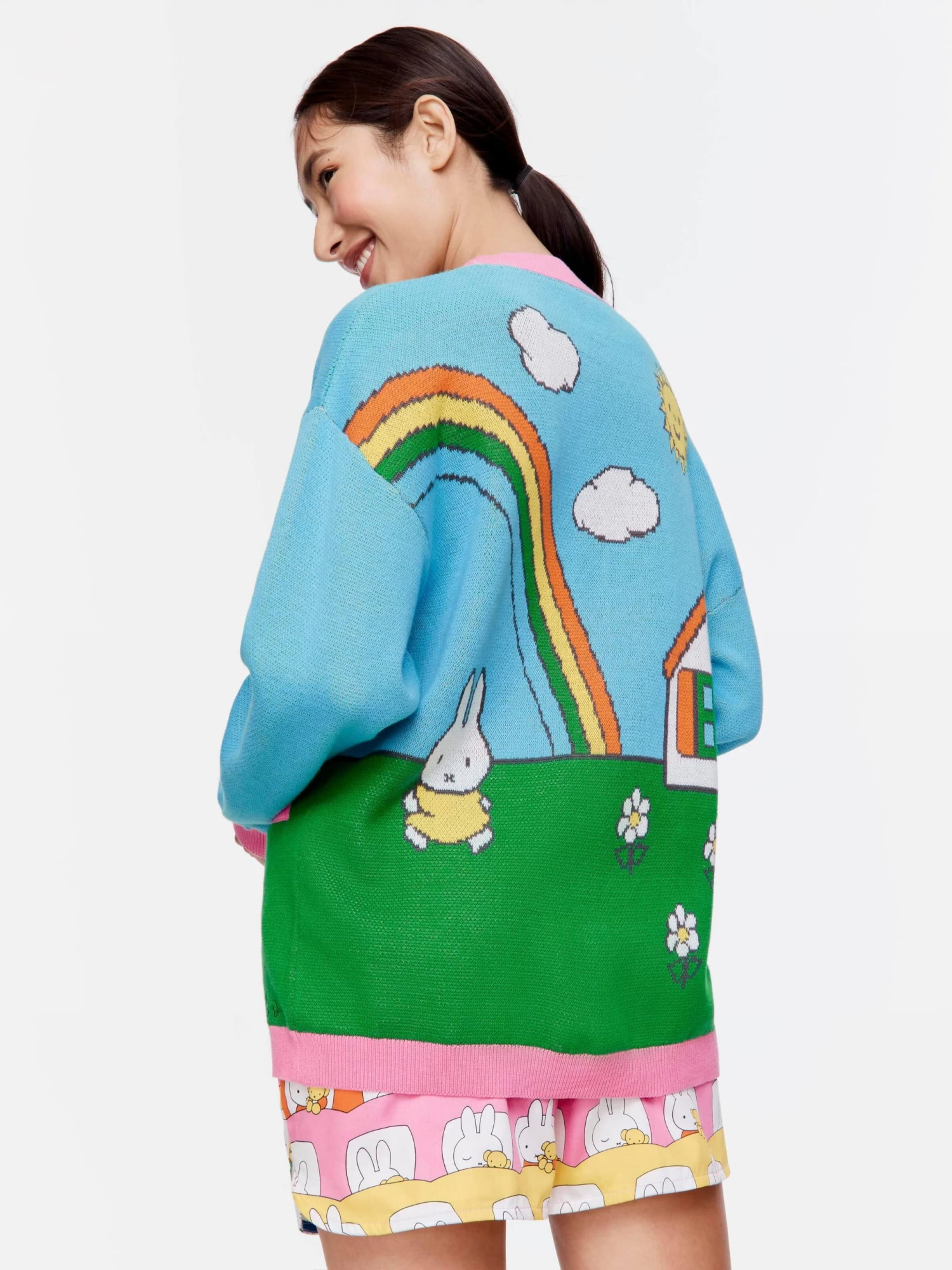 You’ll be wrapped in this adorable cosy cardi, featuring a Miffy rainbow graphic print. This fashion piece is perfect to take you from night to day this Easter!