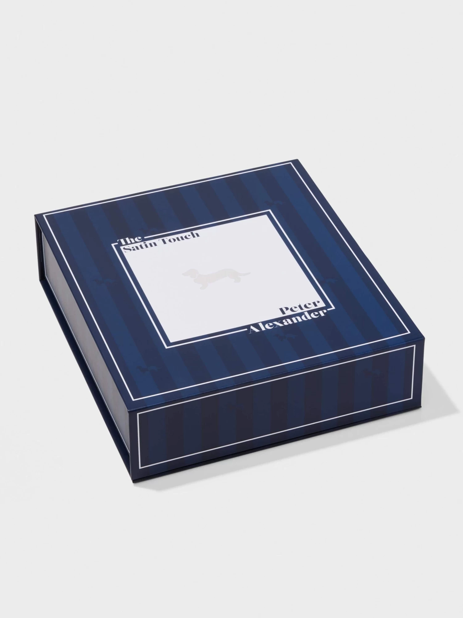 Our number one best selling pyjama set ever has had a glow up! A twist on your favourite style, this new navy shade features a soft self stripe effect with mini penny dogs all over- making it a P.A. exclusive product. White trims and a matching gift box add the extra special touch to produce the perfect gift for any woman, including yourself.
