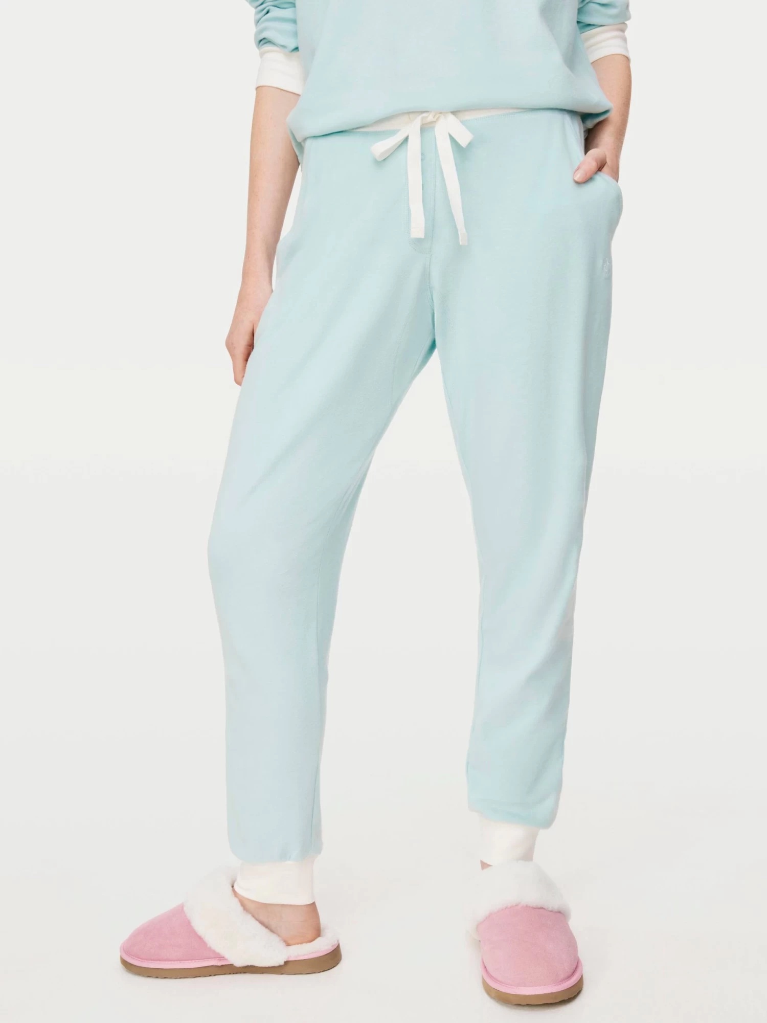 Snuggle up with this teal track PJ pant. Made with 95% soft organic in-conversion cotton and blended with 5% elastane rib to ensure you stay comfy and breathable throughout the night.