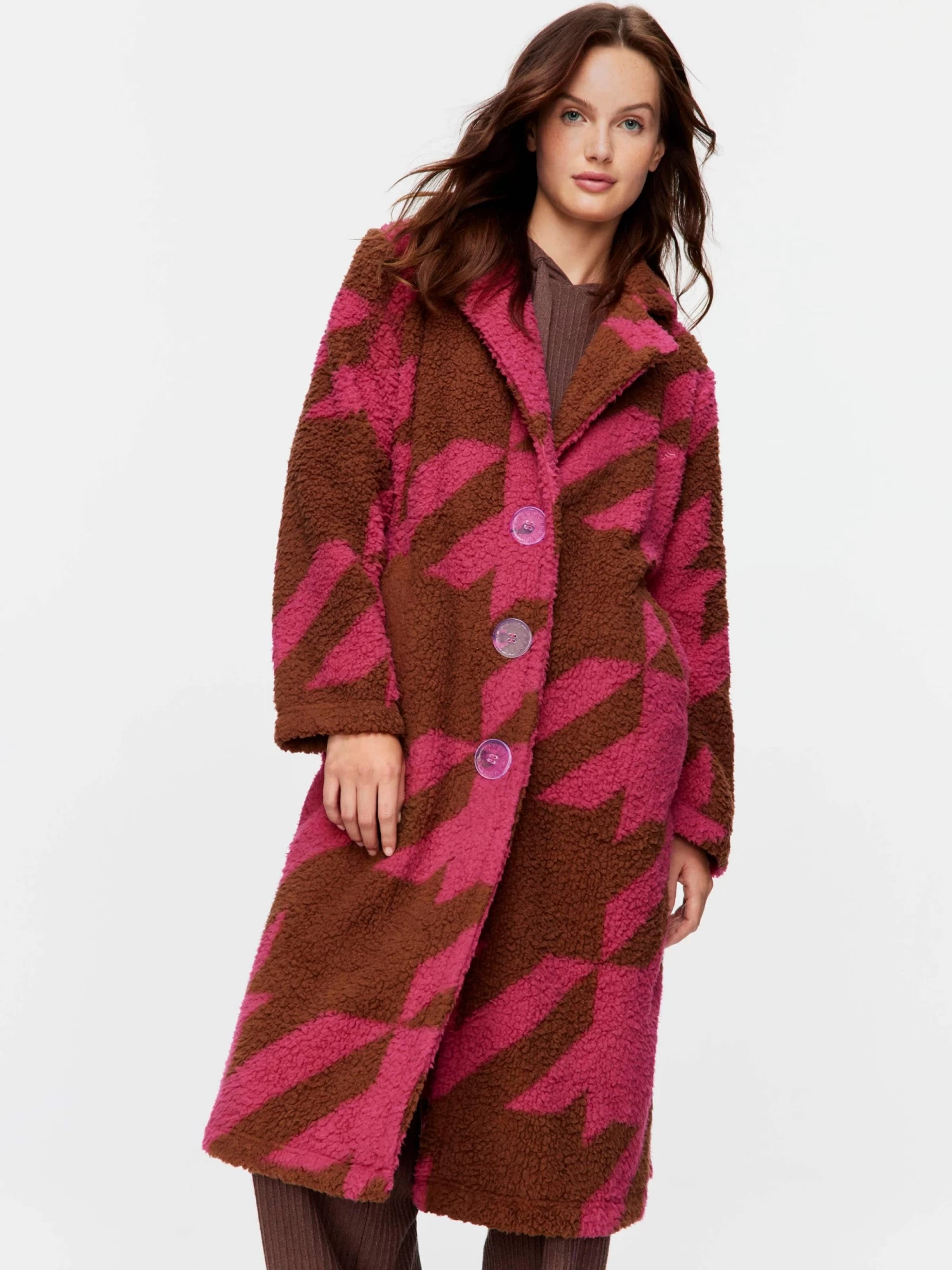 Stand out from the crowd in this bold houndstooth-print dressing gown. This bright fleecey delight makes the ideal winter warmer.