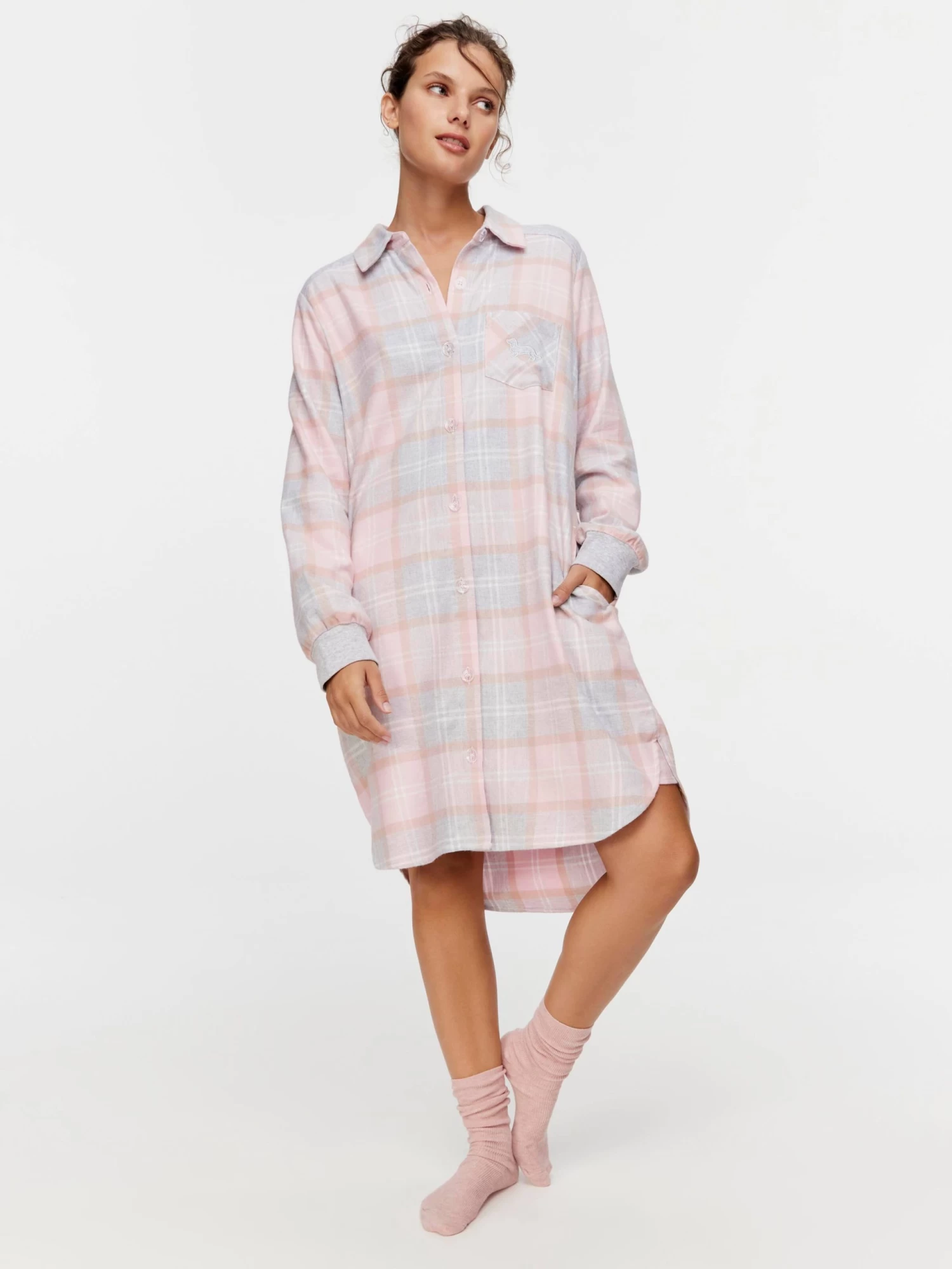This women’s nightshirt is a pretty pink dream! Made from our warm cotton flannelette to ensure you’re feeling toasty all night long.