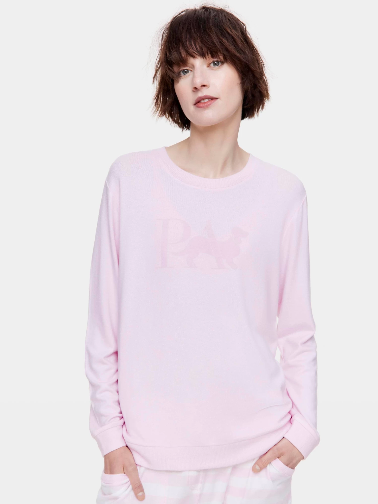 This pink fuzzy sweater is the ultimate winter warmer. Made from P.A.’s irresistible and buttery soft fuzzy fabric, this sweater style is guaranteed to keep you cosy.