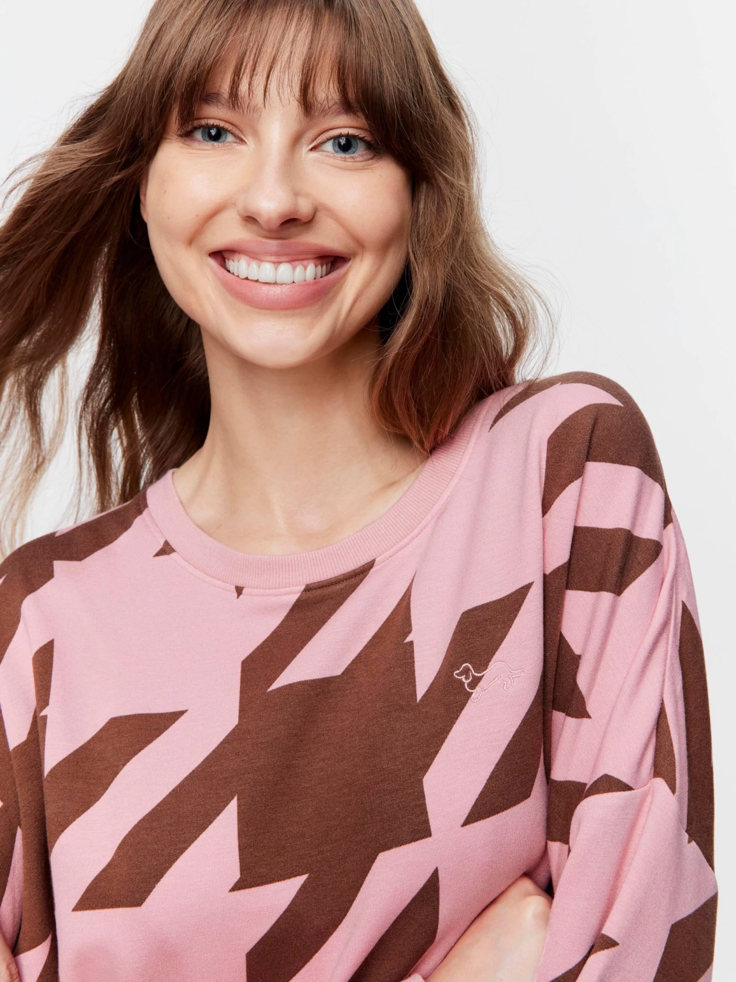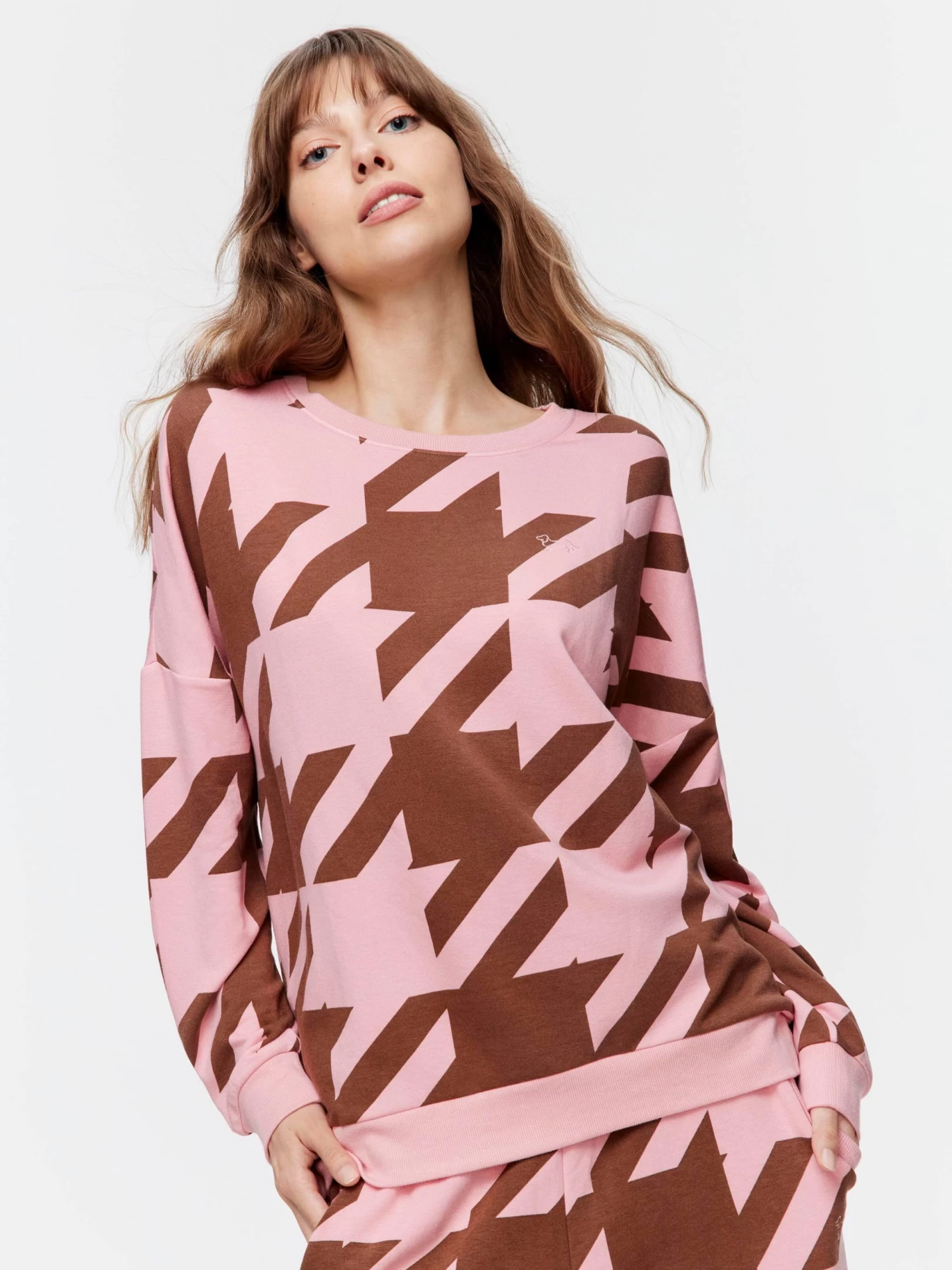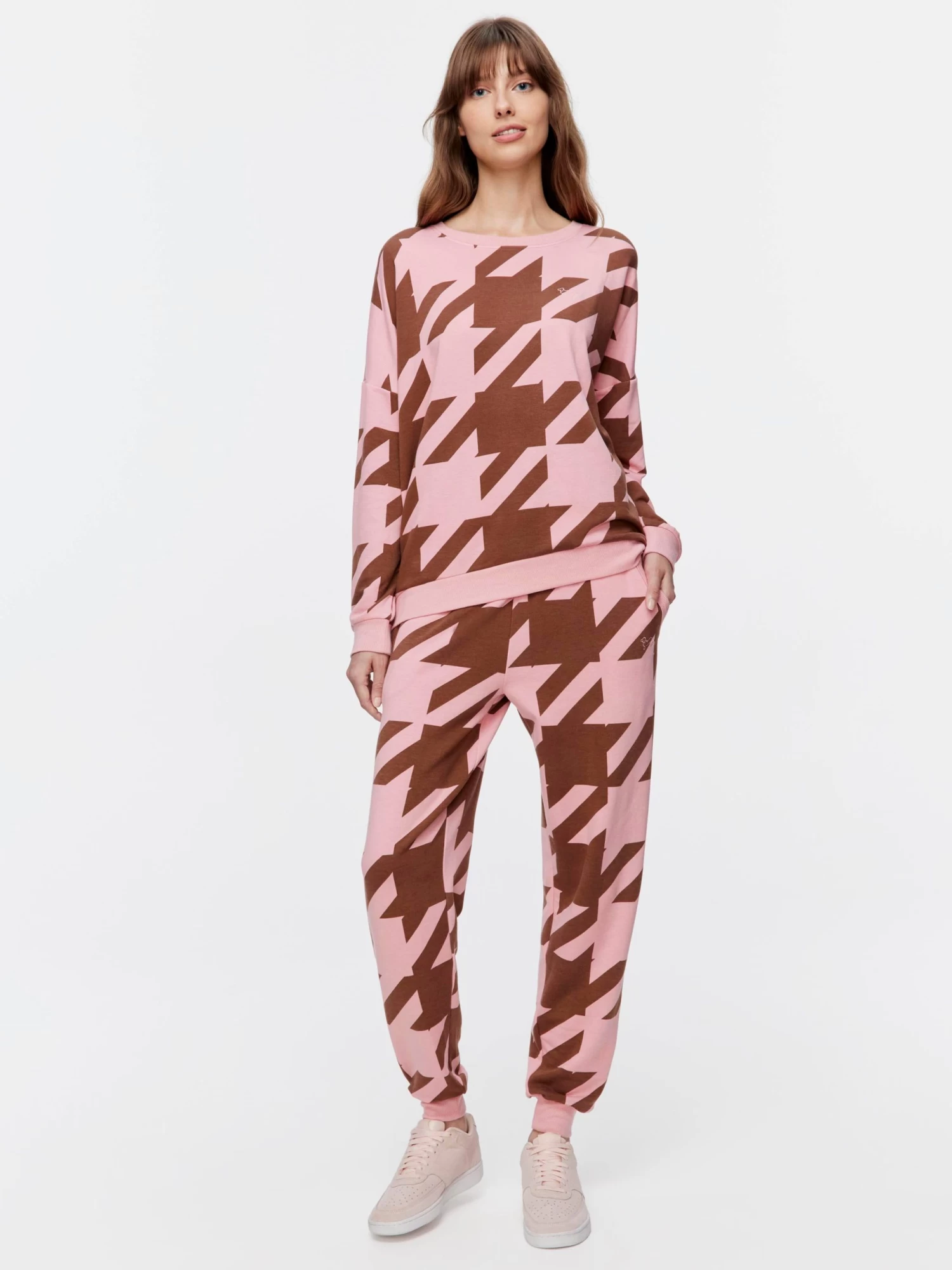 Stay indoors this winter in your cosiest PA loungewear. This pretty pink houndstooth print is also available on the matching trackies.