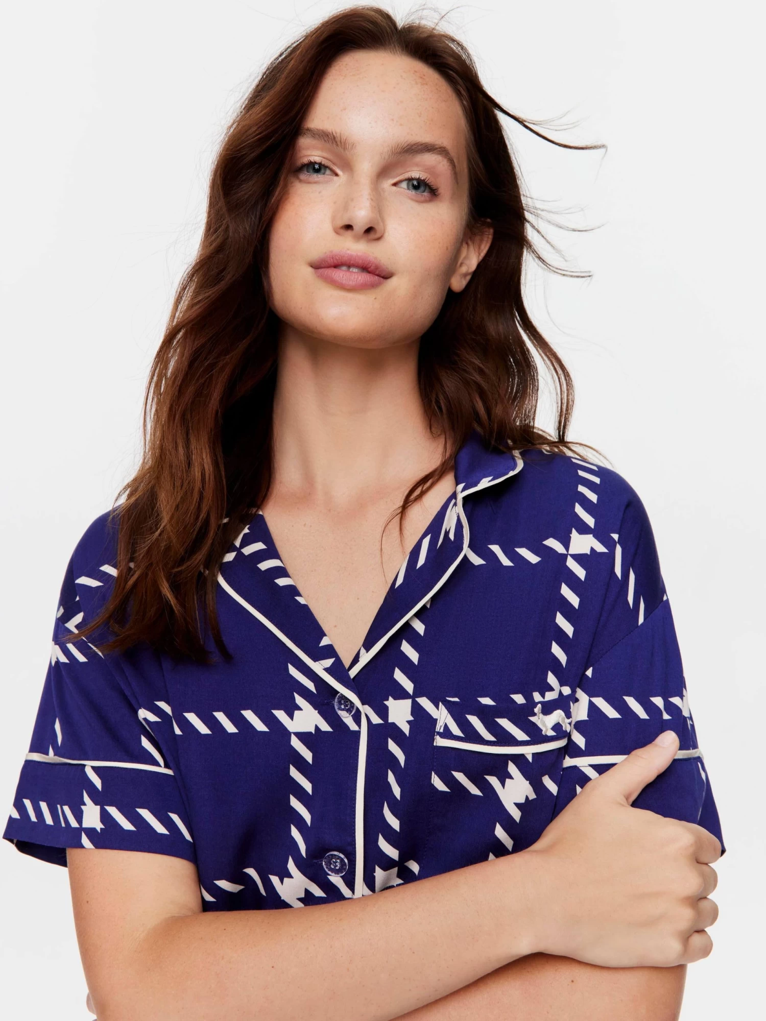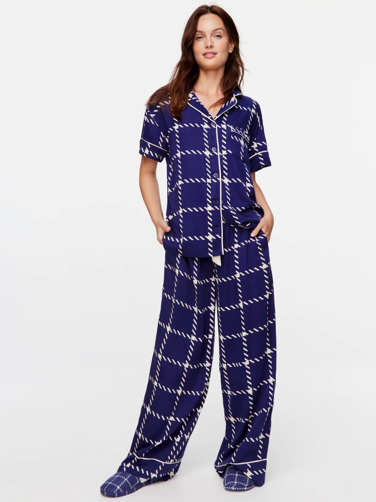 Don’t let winter give you the blues. This women’s PJ set features a navy windowpane pattern on smooth cotton sateen and is packaged in a matching gift bag.
