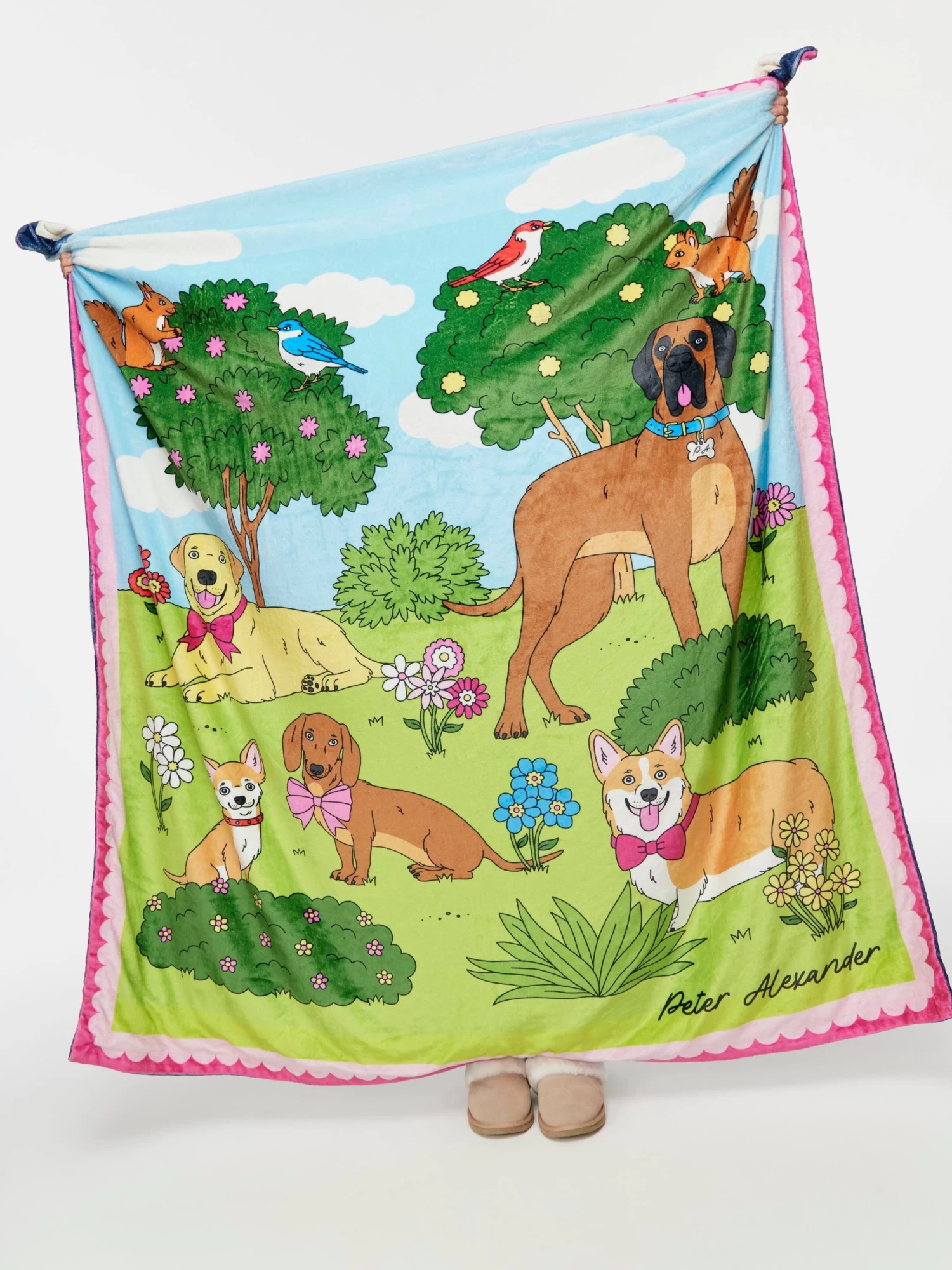 At P.A. we love puppies in all shapes and sizes and this blanket is makes no exception. Featuring lots of dogs on one said and a lovely foral on the other, there something to love! So, wrap yourself up in this gorgeous double sided blanket this winter.