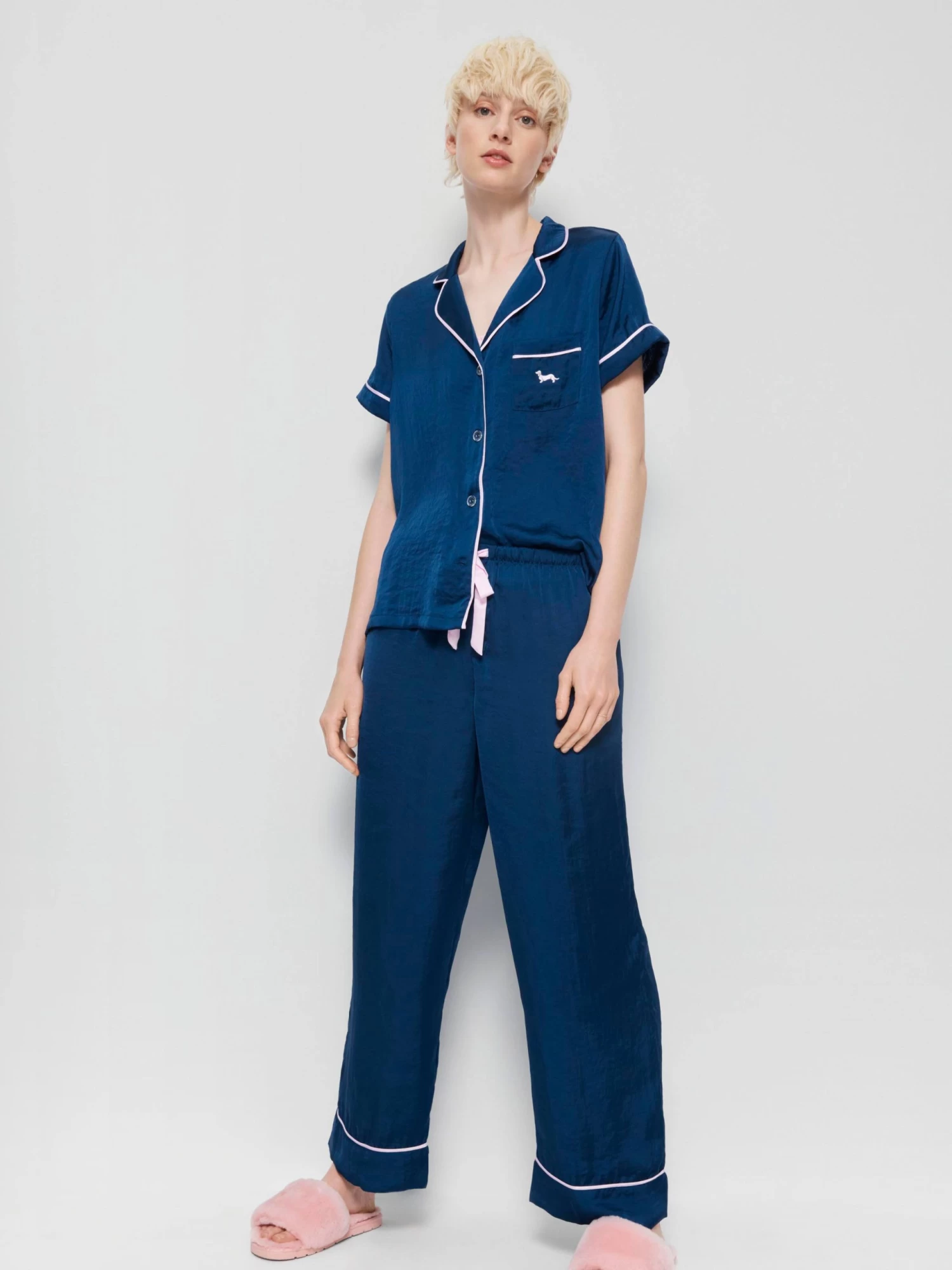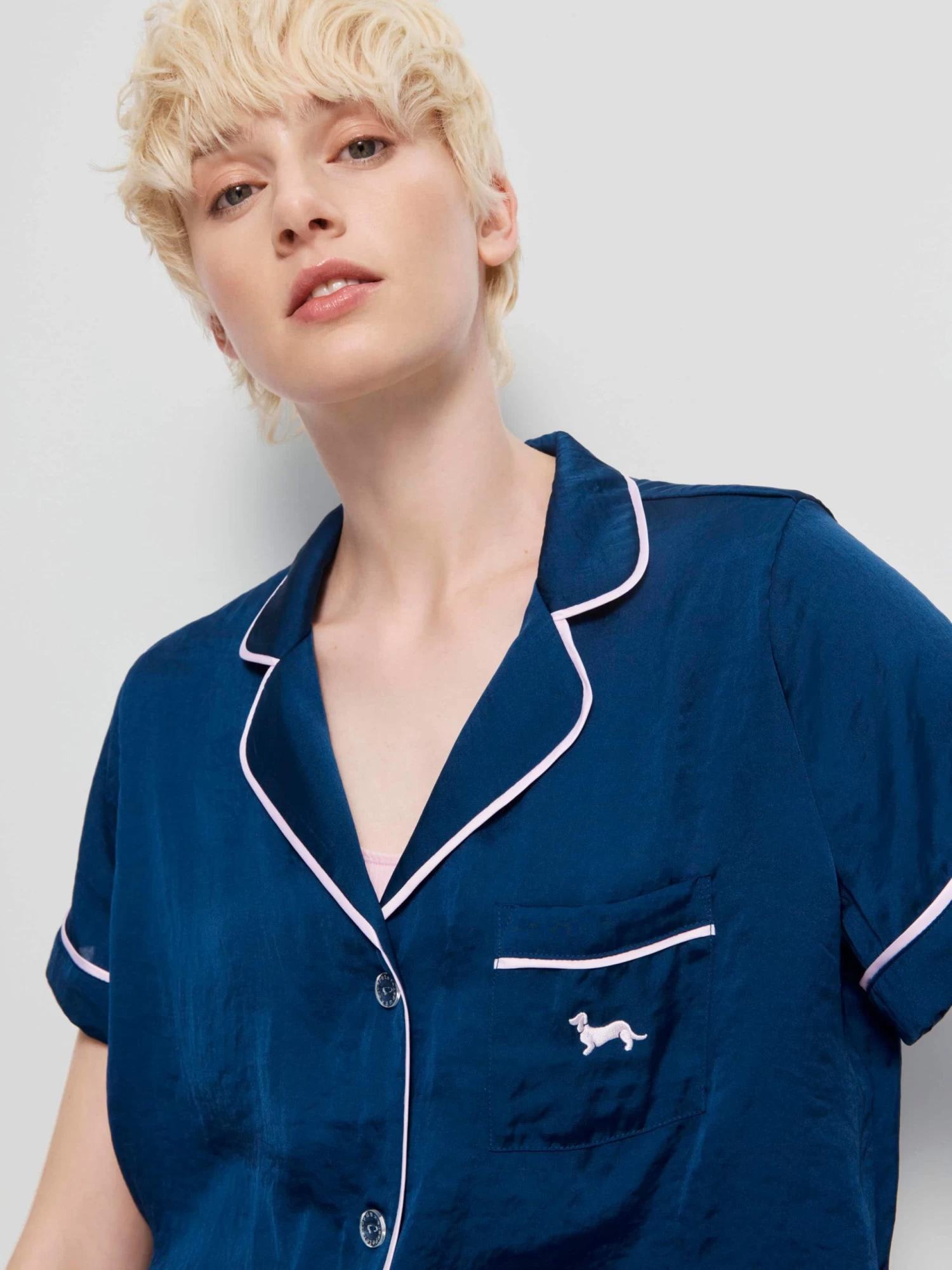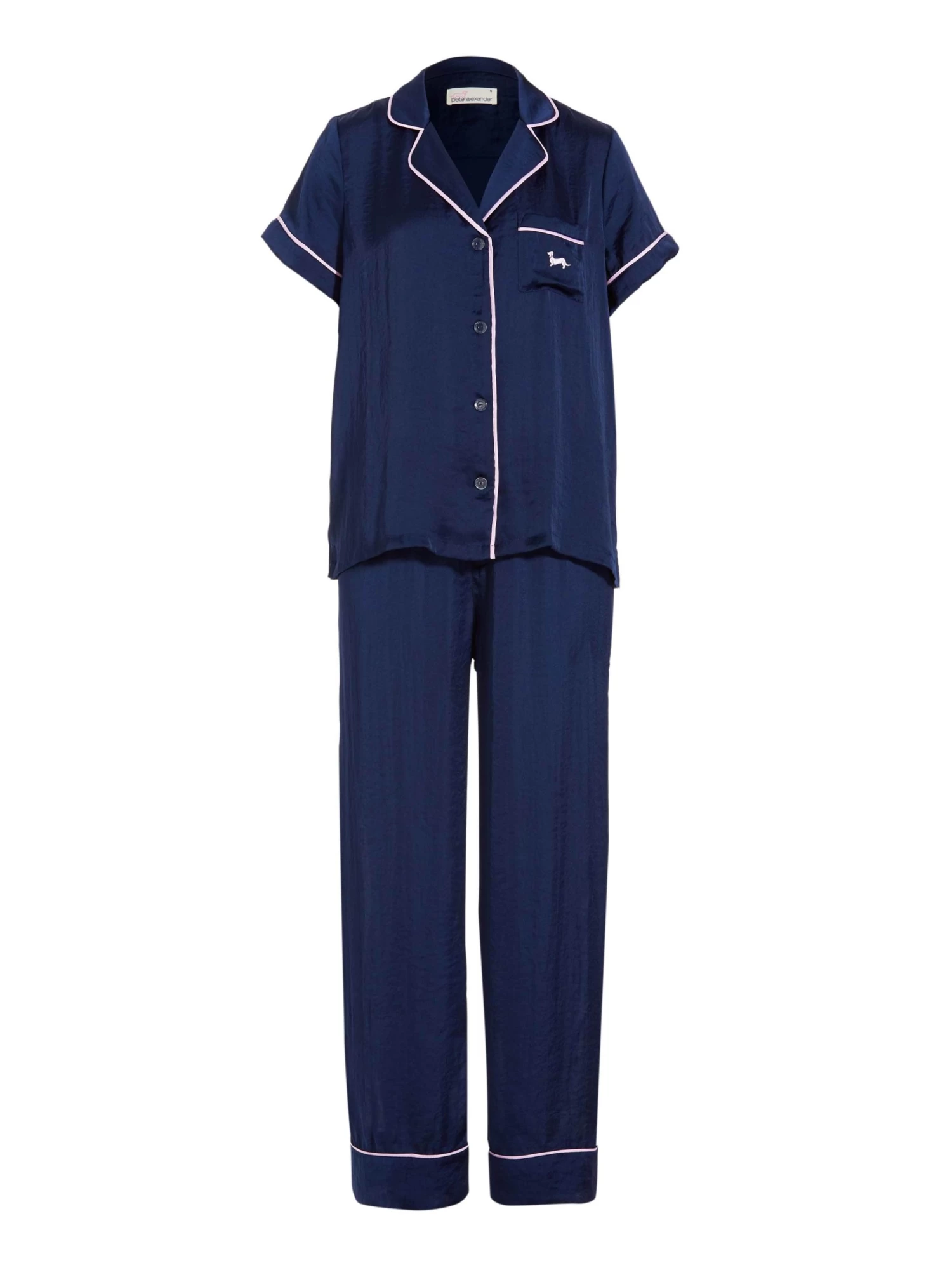 Our popular chic satin PJ sets just keep getting better and better. This women’s satin chic pyjama set in classic navy comes with a short sleeve shirt combined with a full length pyjama pant.