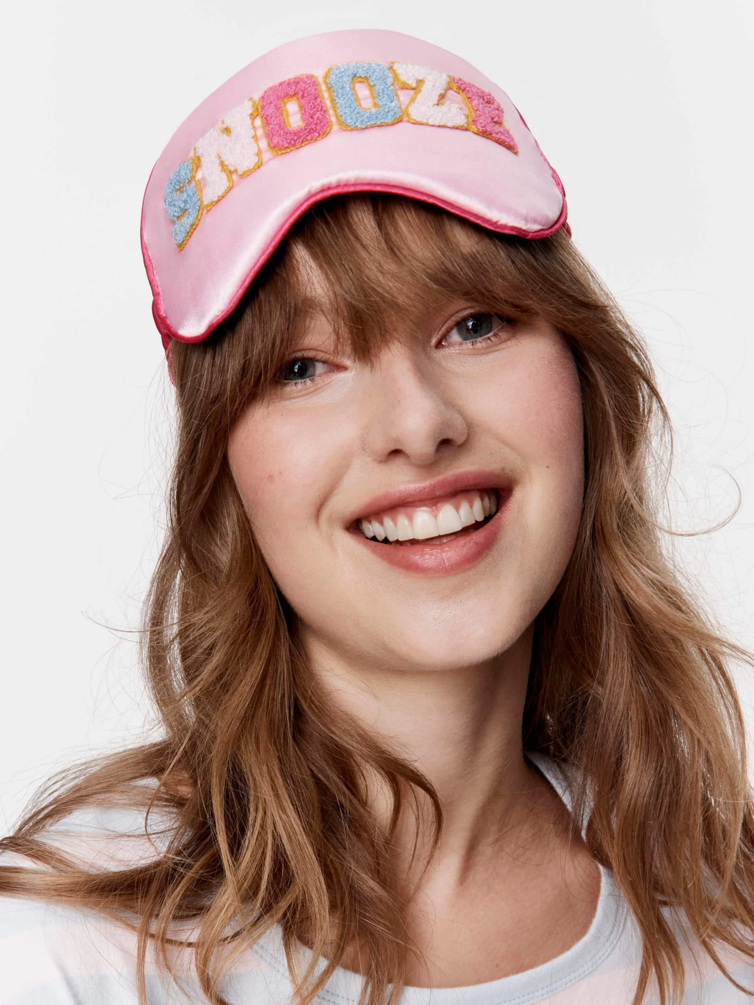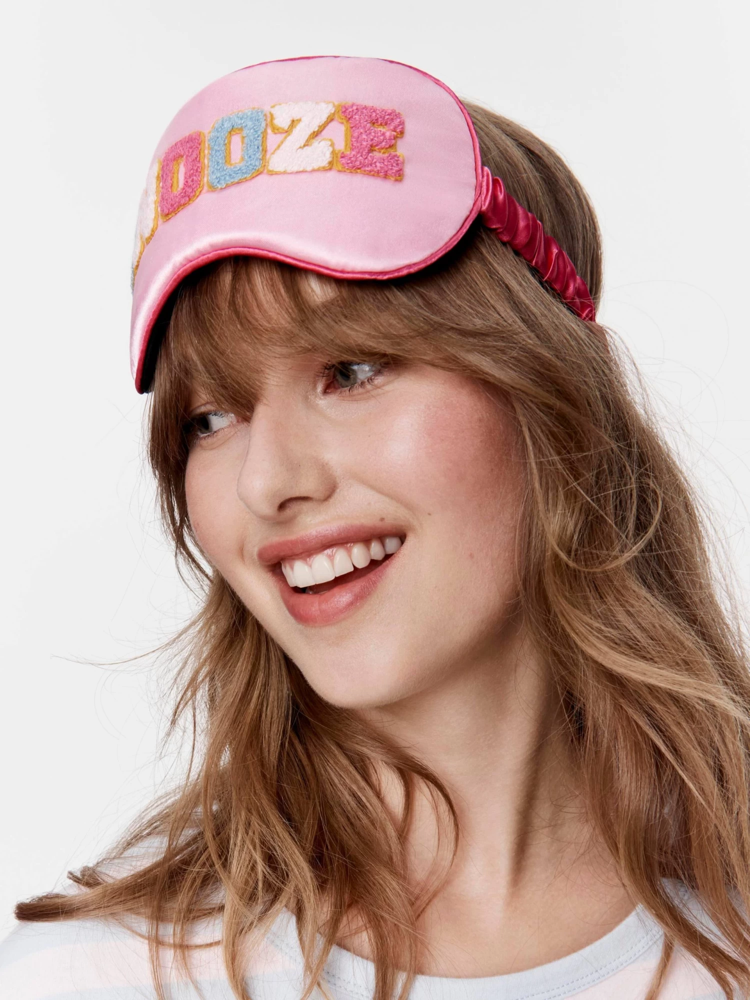Enjoy your beauty sleep in this adorable women’s eyemask. With an oversized SNOOZE print and soft satin ribbon, this mask will be your best-kept sleepy secret.