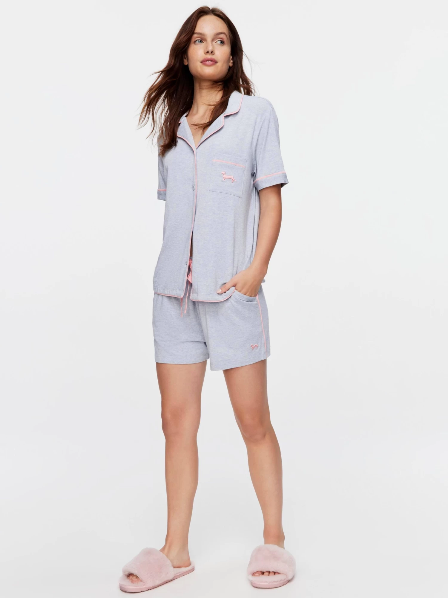 You won’t be feeling grey in this bamboo blend PJ set! Featuring a short sleeve shirt and matching long shorts, this ultra soft and comfy set is sure to become a night time staple.